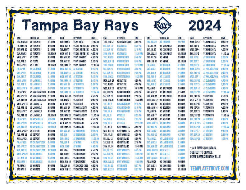 Keep up with the 2024 Tampa Bay Rays with our handy printable schedules, now available for each US time zone.