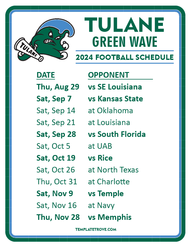 If you get a chance, please share the schedules through social media with your fellow Green Wave Fans. It's easy, and it would help us out a bunch, just click one of the social share buttons at the right of the screen on desktop or the black share button at the bottom right on mobile phones.