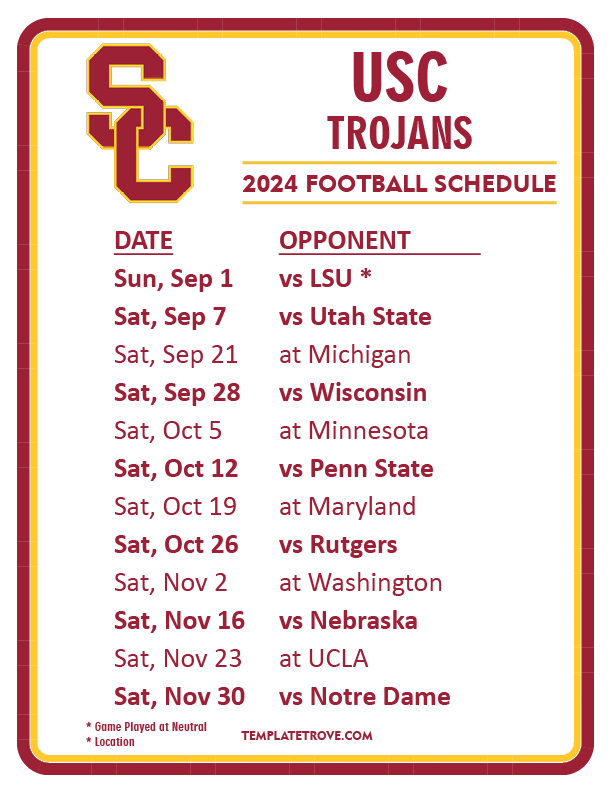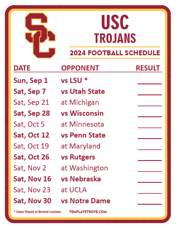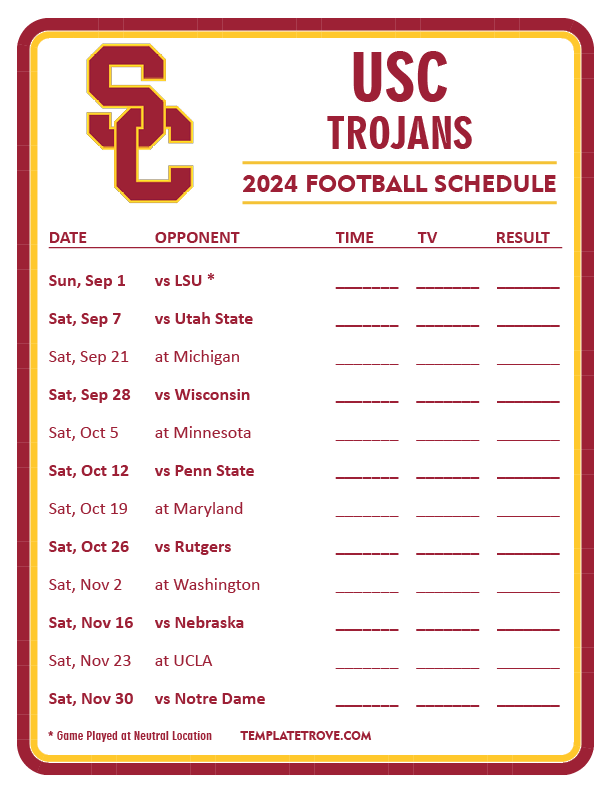 If you get a chance, please share the schedules through social media with your fellow Trojan Fans. It's easy, and it would help us out a bunch, just click one of the social share buttons at the right of the screen on desktop or the black share button at the bottom right on mobile phones.