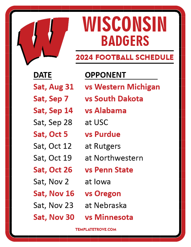 If you get a chance, please share the schedules through social media with your fellow Badger Fans. It's easy, and it would help us out a bunch, just click one of the social share buttons at the right of the screen on desktop or the black share button at the bottom right on mobile phones.