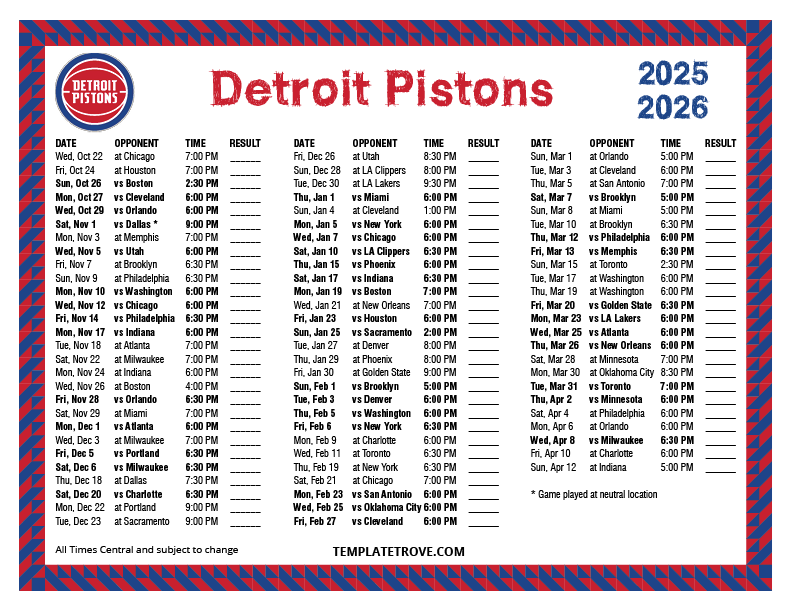 Keep up with the Detroit Pistons in the 2025-26 season with our