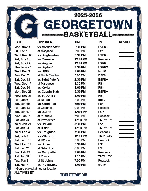 Keep up with the Georgetown Hoyas basketball in the 2025-26 season with our