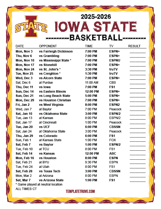 Keep up with the Iowa State Cyclones basketball in the 2025-26 season with our
