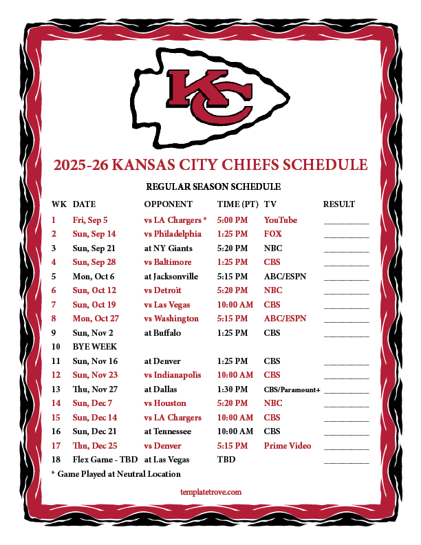 If you get a chance, please share the schedules through social media with your fellow Chiefs Fans. It's easy, and it would help us out a bunch, just click one of the social share buttons at the right of the screen on desktop or the black share button at the bottom right on mobile phones.