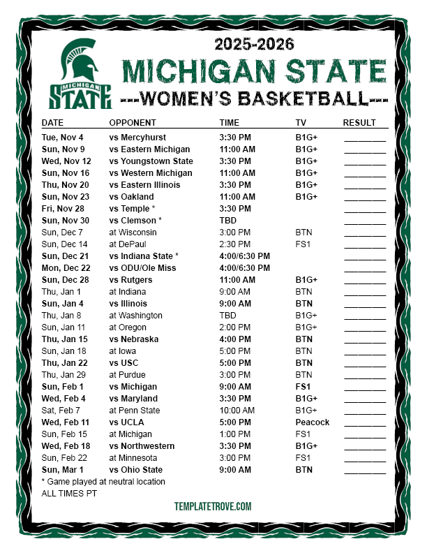 Keep up with Michigan State Spartans women's basketball in the 2025-26 season with our