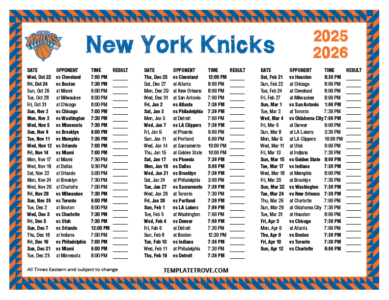 When you get a chance, we’d love it if you shared the schedules with your fellow Knicks fans! It’s super easy — just click one of the social share buttons on the right side of your screen (if you’re on desktop) or the black share button at the bottom right (if you’re on mobile). Every share helps us out a ton — thanks for spreading the word!