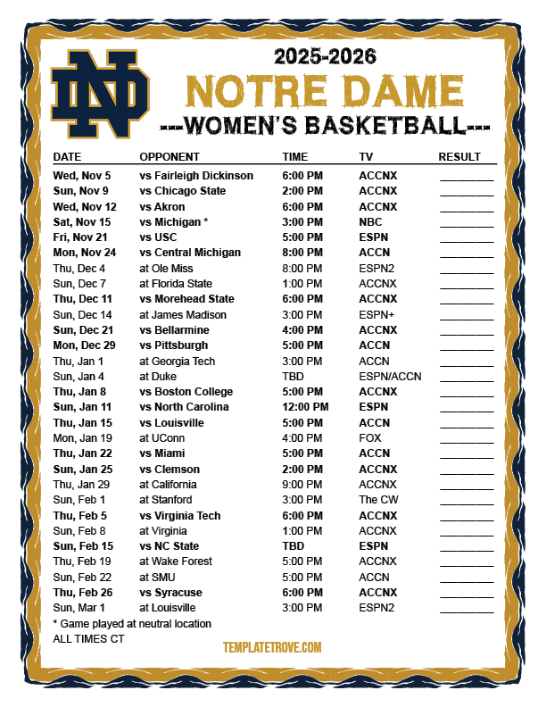 Keep up with Notre Dame Fighting Irish women's basketball in the 2025-26 season with our