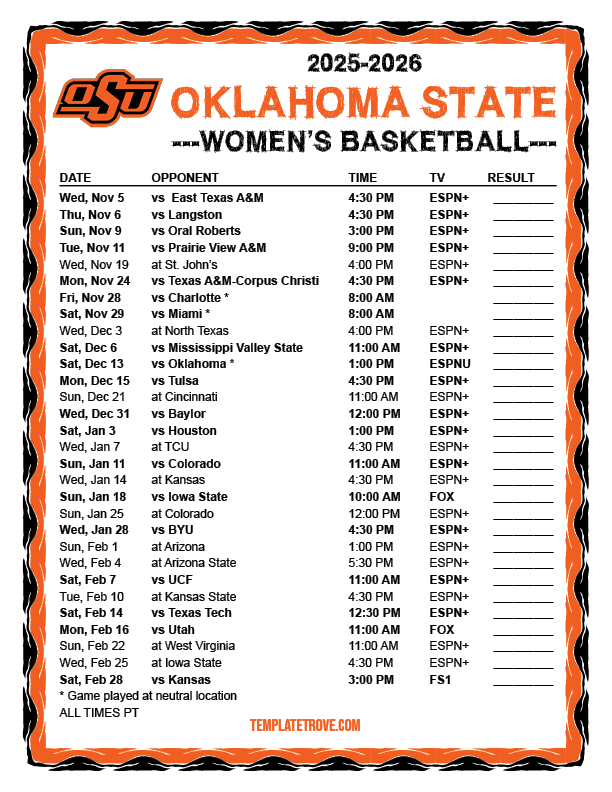 Keep up with Oklahoma State Cowgirls Women's Basketball in the 2025-26 season with our