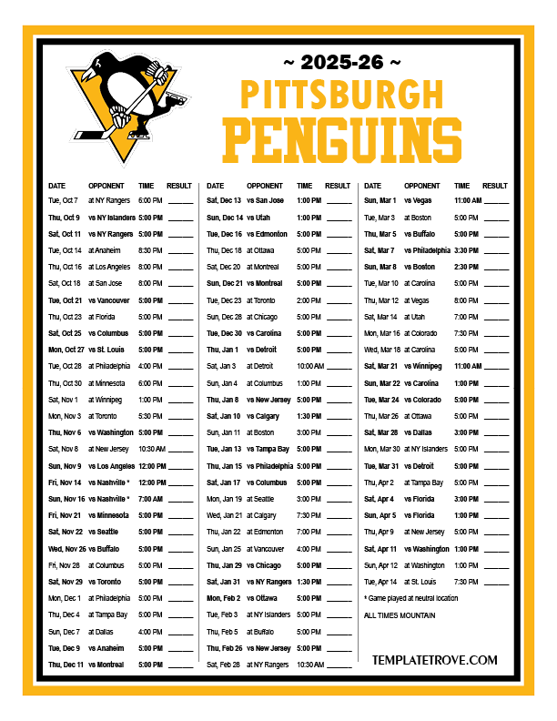 Keep up with the Pittsburgh Penguins in the 2025-26 season with our