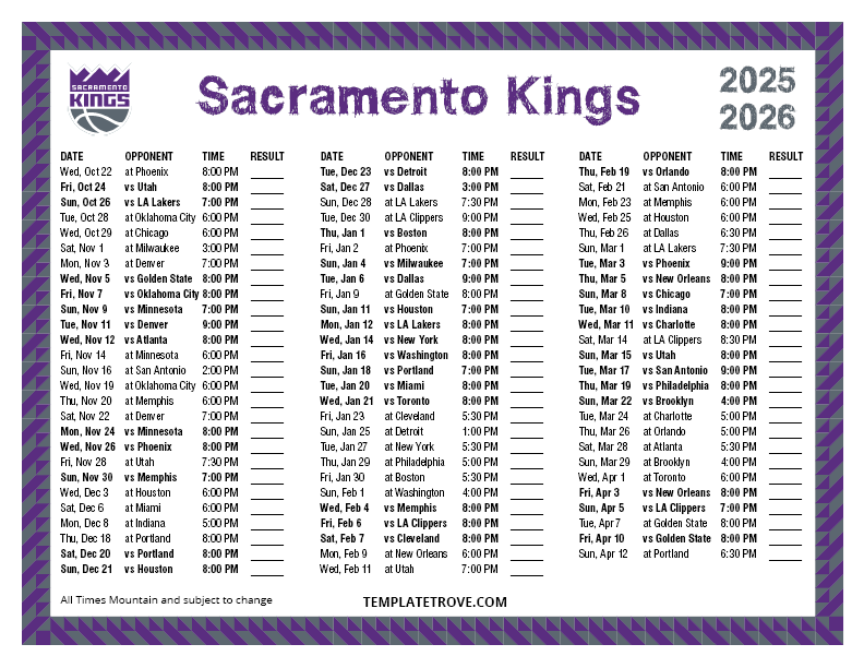 Keep up with the Sacramento Kings in the 2025-26 season with our