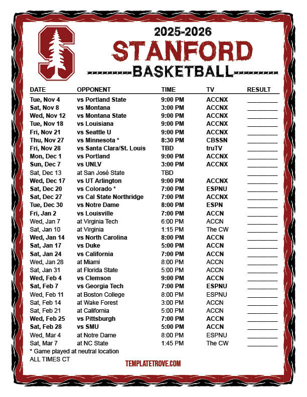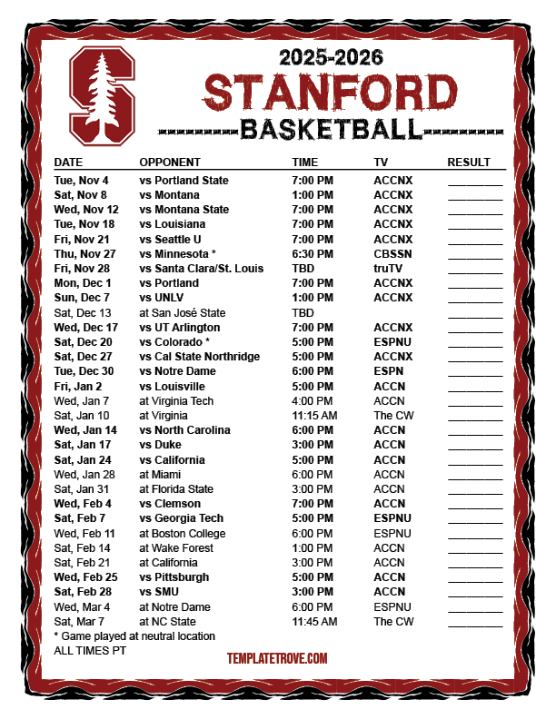 Keep up with the Stanford Cardinal basketball in the 2025-26 season with our