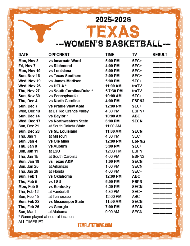 Keep up with Texas Longhorns women's basketball in the 2025-26 season with our