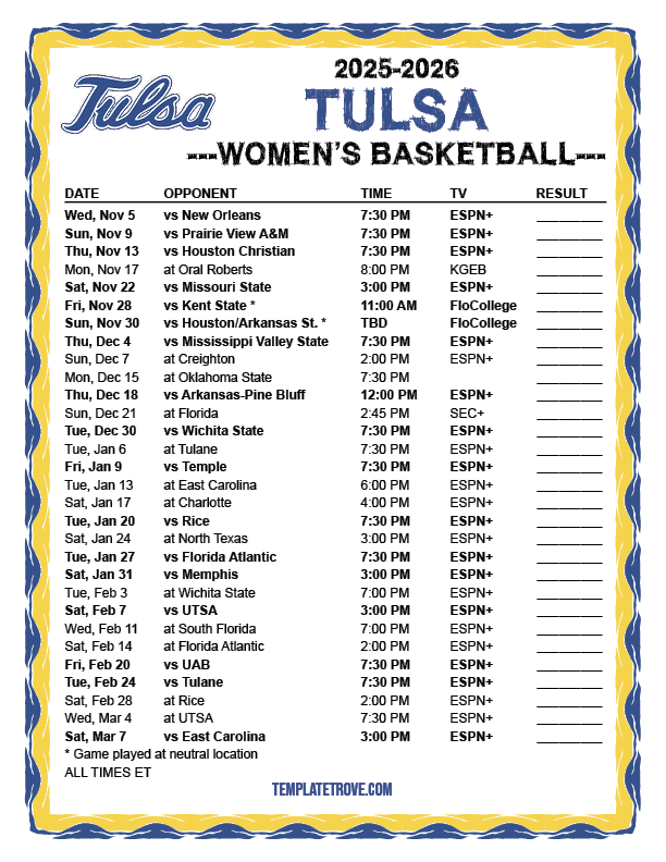 Keep up with Tulsa Golden Hurricane women's basketball in the 2025-26 season with our