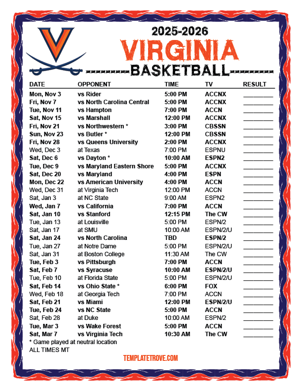 Keep up with the Virginia Cavaliers basketball in the 2025-26 season with our