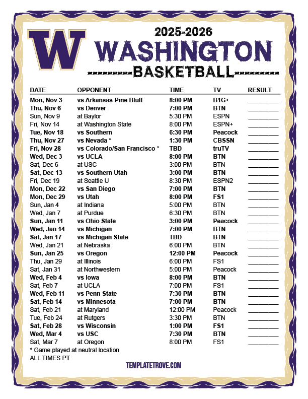 Keep up with the Washington Huskies basketball in the 2025-26 season with our