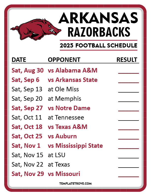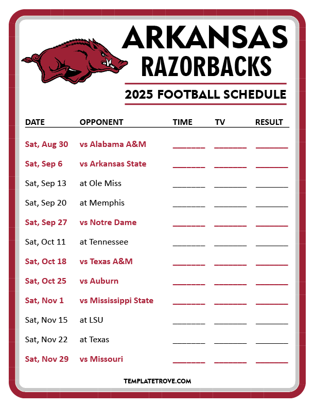 If you get a chance, please share the schedules through social media with your fellow Razorback Fans. It's easy, and it would help us out a bunch, just click one of the social share buttons at the right of the screen on desktop or the black share button at the bottom right on mobile phones.