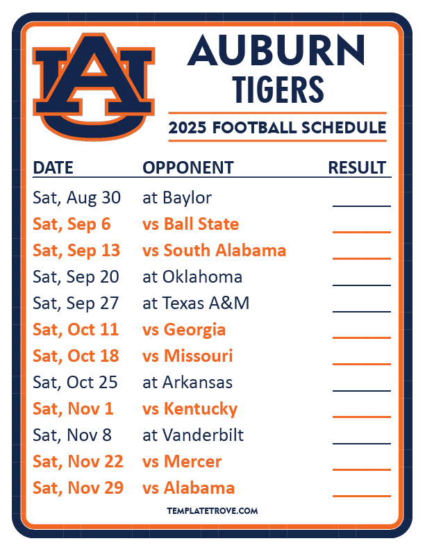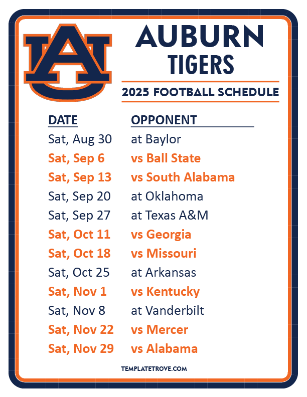 Keep up with Auburn Tigers Football in the 2025