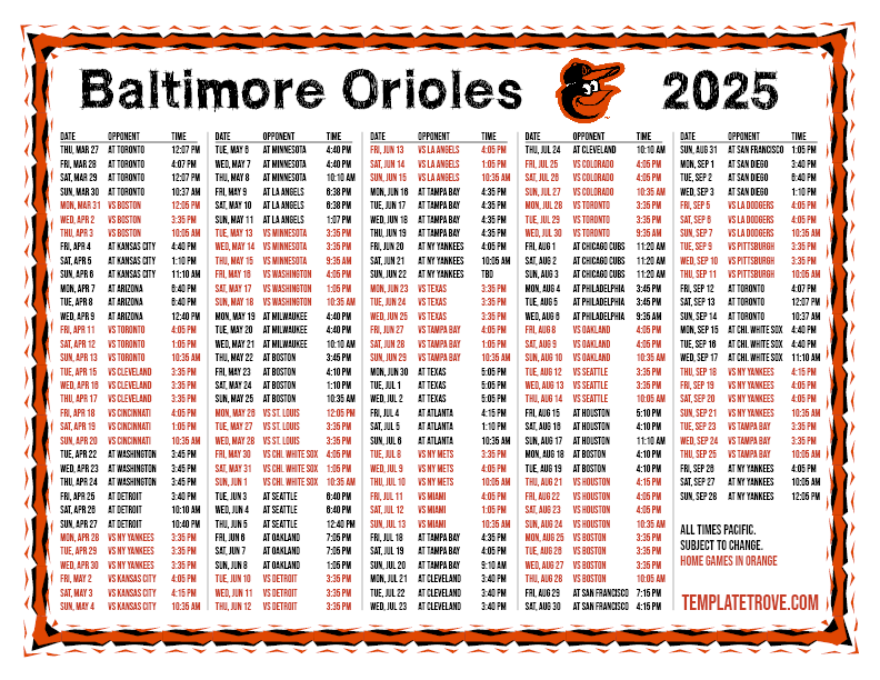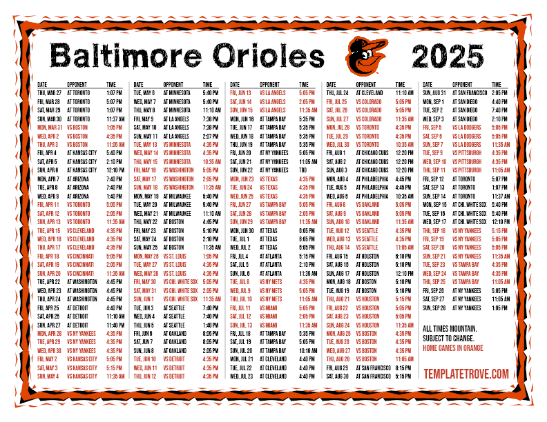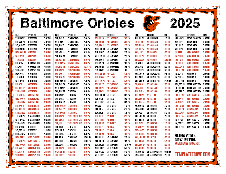 Keep up with the 2025 Baltimore Orioles with our handy printable schedules, now available for each US time zone.