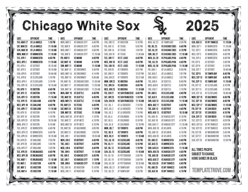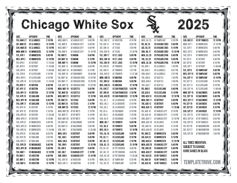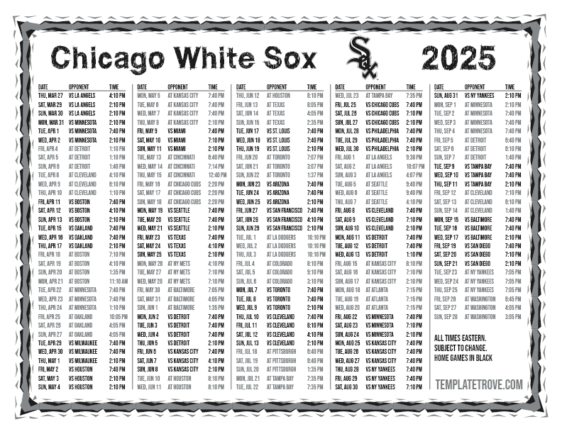 Keep up with the 2025 Chicago White Sox with our handy printable schedules, now available for each US time zone.