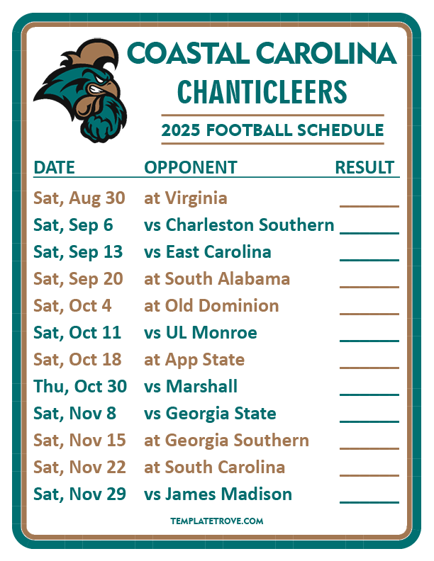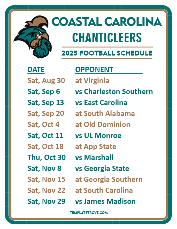 Keep up with Coastal Carolina Chanticleers Football in the 2025