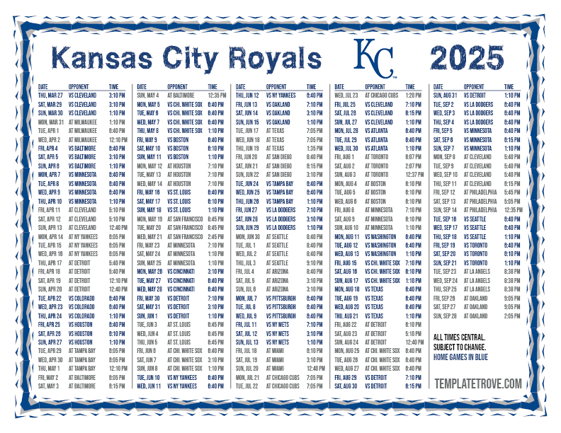 Keep up with the 2025 Kansas City Royals with our handy printable schedules, now available for each US time zone.