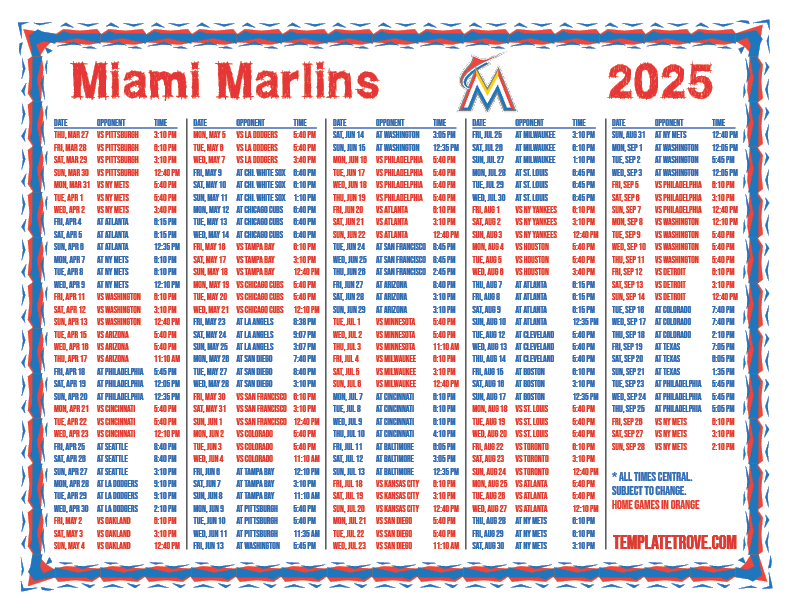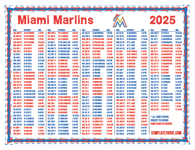Keep up with the 2025 Miami Marlins with our handy printable schedules, now available for each US time zone.
