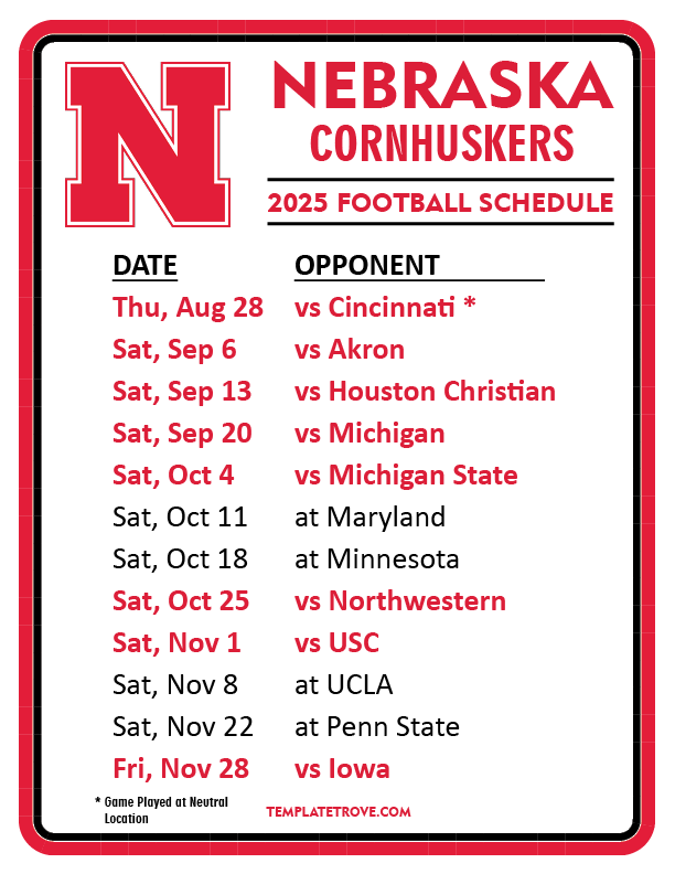 Keep up with Nebraska Cornhuskers Football in the 2025