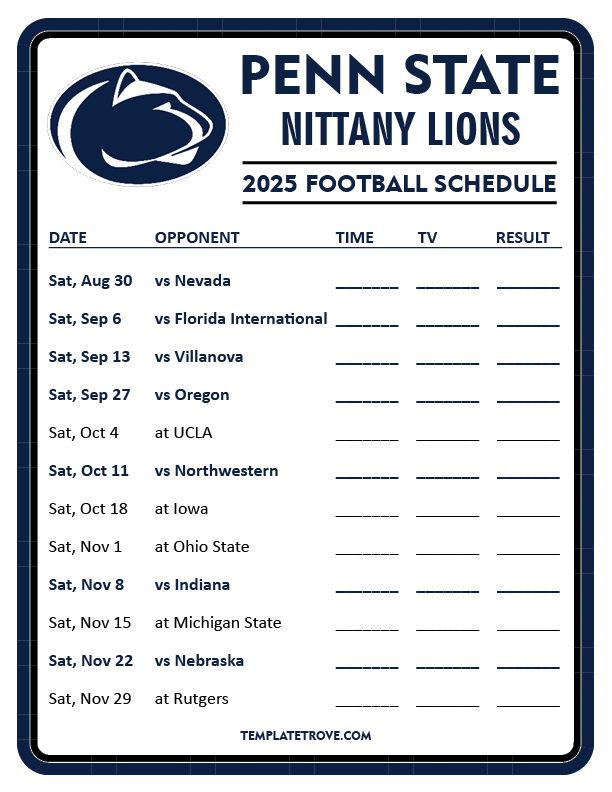 If you get a chance, please share the schedules through social media with your fellow Nittany Lion Fans. It's easy, and it would help us out a bunch, just click one of the social share buttons at the right of the screen on desktop or the black share button at the bottom right on mobile phones.