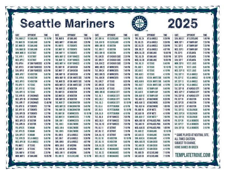 Keep up with the 2025 Seattle Mariners with our handy printable schedules, now available for each US time zone.