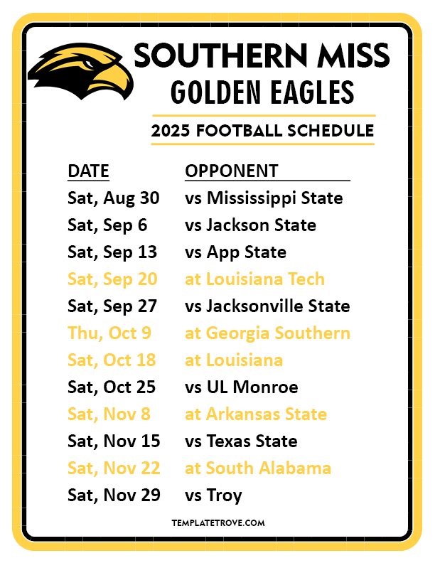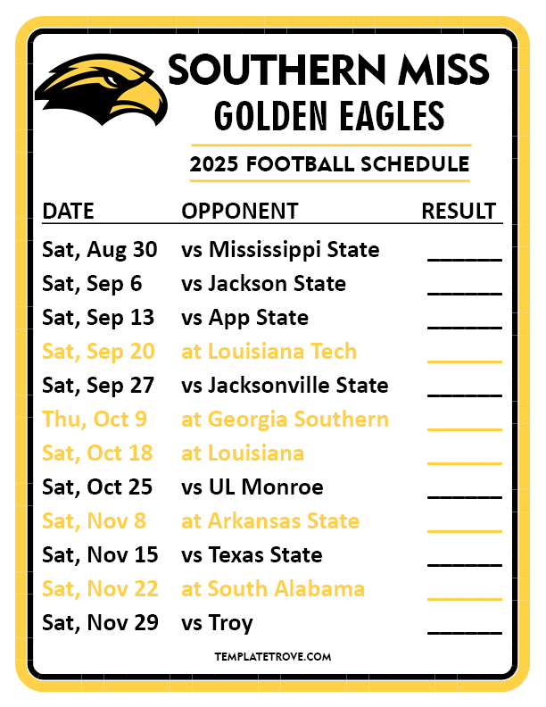 Keep up with Southern Miss Golden Eagles Football in the 2025