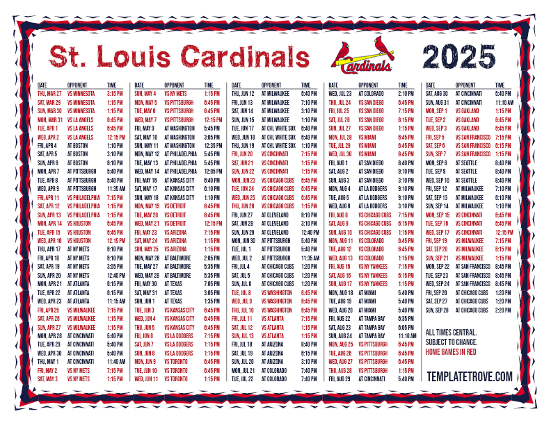 Keep up with the 2025 St. Louis Cardinals with our handy printable schedules, now available for each US time zone.
