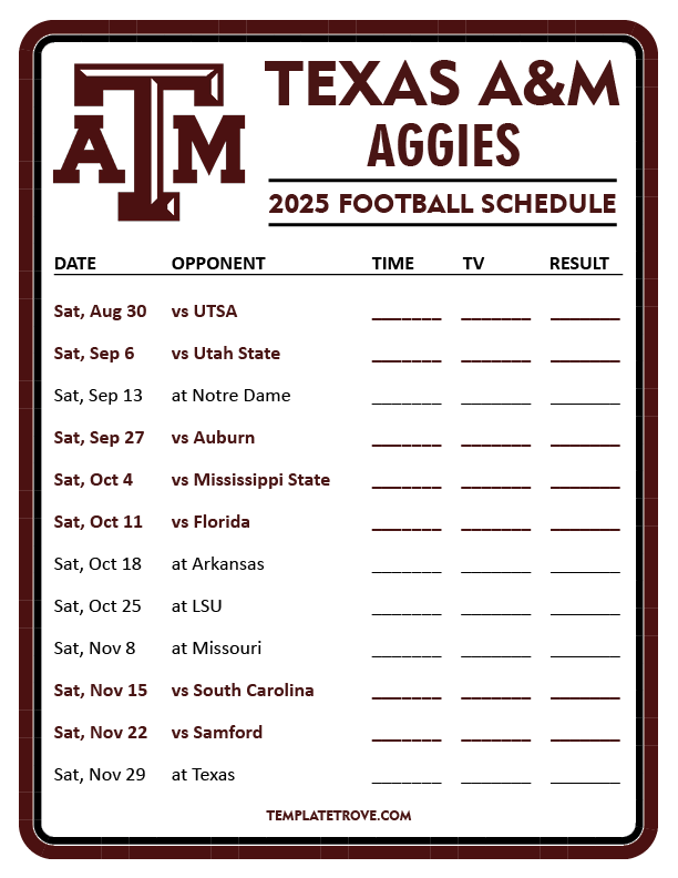 If you get a chance, please share the schedules through social media with your fellow Aggie Fans. It's easy, and it would help us out a bunch, just click one of the social share buttons at the right of the screen on desktop or the black share button at the bottom right on mobile phones.