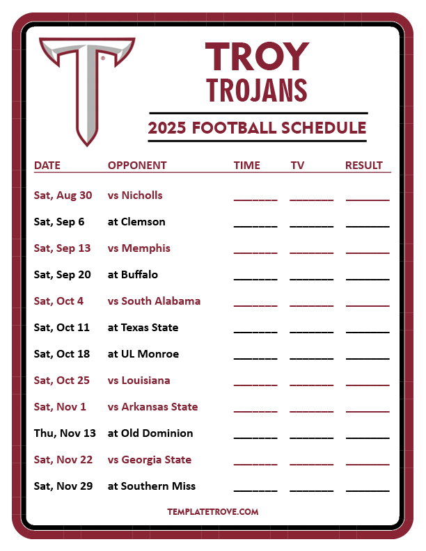 If you get a chance, please share the schedules through social media with your fellow Troy Fans. It's easy, and it would help us out a bunch, just click one of the social share buttons at the right of the screen on desktop or the black share button at the bottom right on mobile phones.