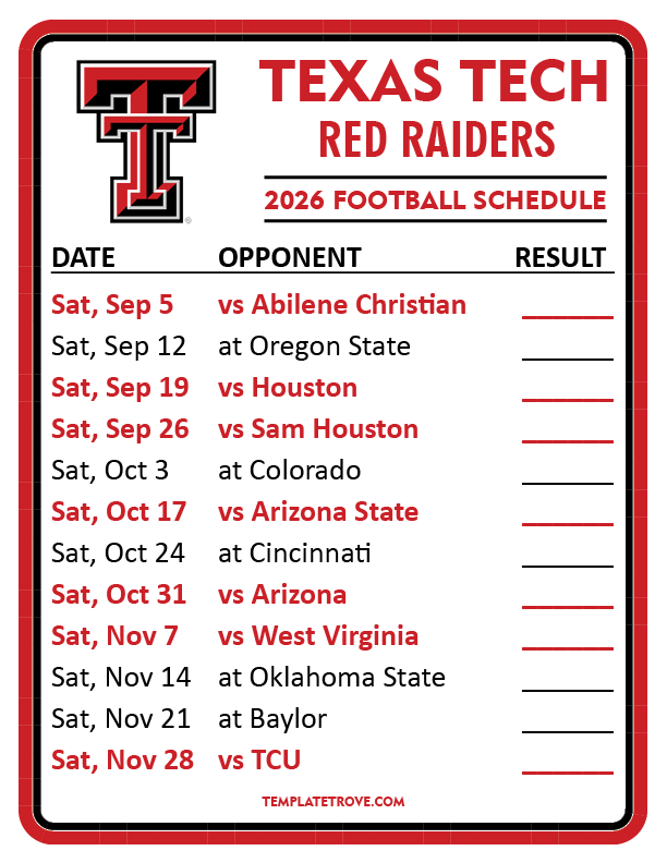 Keep up with Texas Tech Red Raiders Football in the 2026