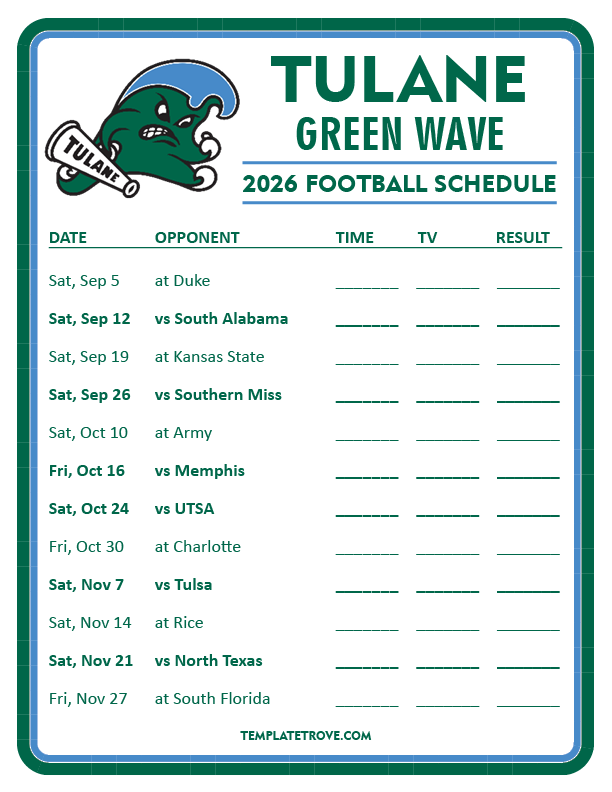 Keep up with Tulane Green Wave Football in the 2026
