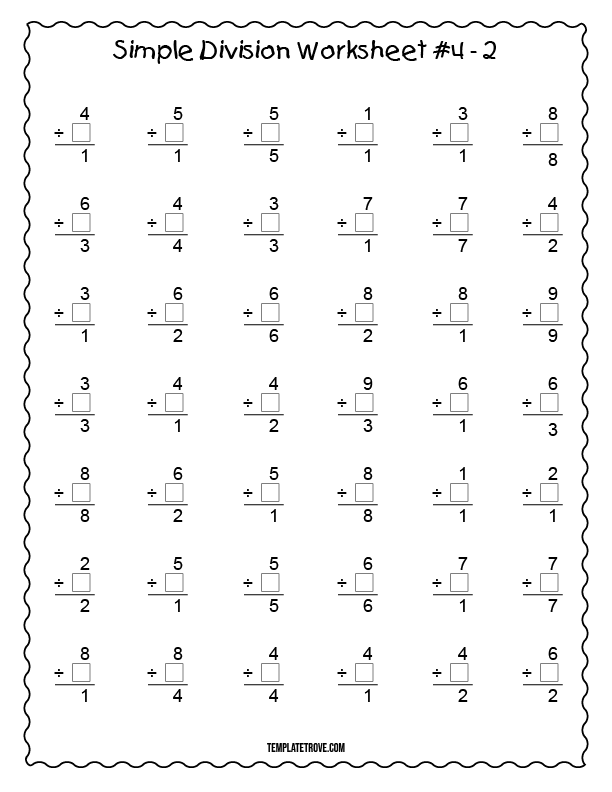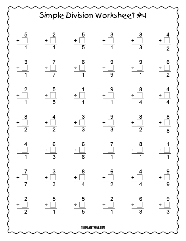 At Template Trove, we provide simple division worksheets for 3rd grade students. Our math worksheets are printable and include answer sheets for you or your student to check the correct answers.