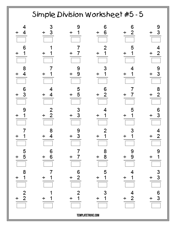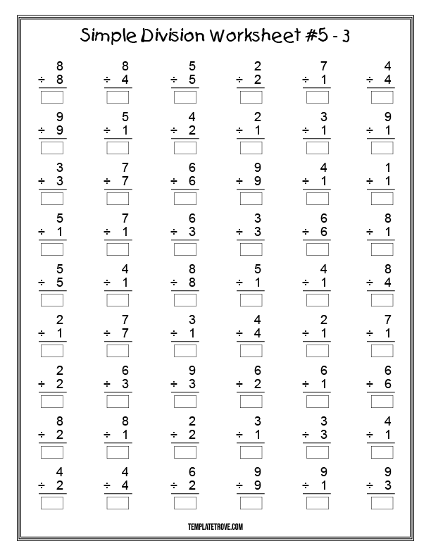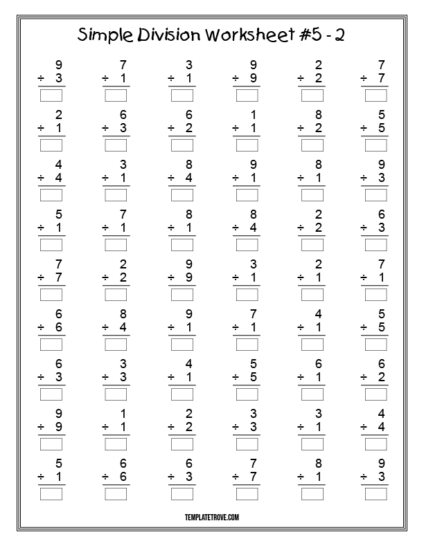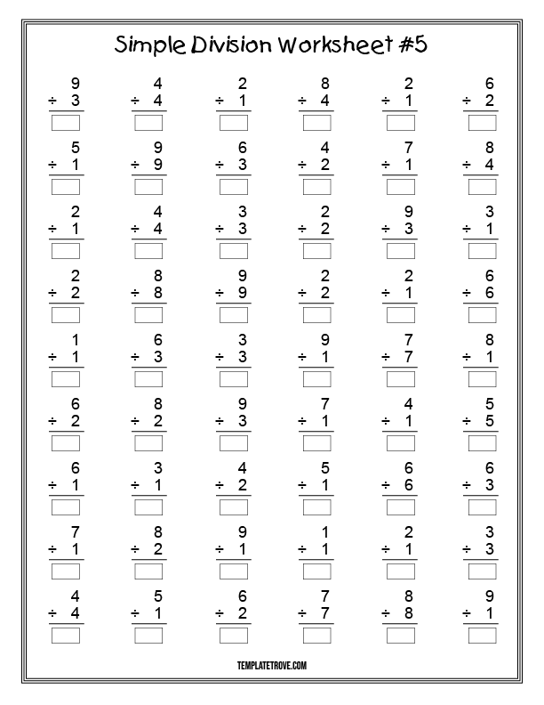 At Template Trove, we provide simple division worksheets for 3rd grade students. Our math worksheets are printable and include answer sheets for you or your student to check the correct answers.
