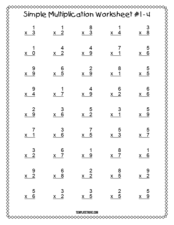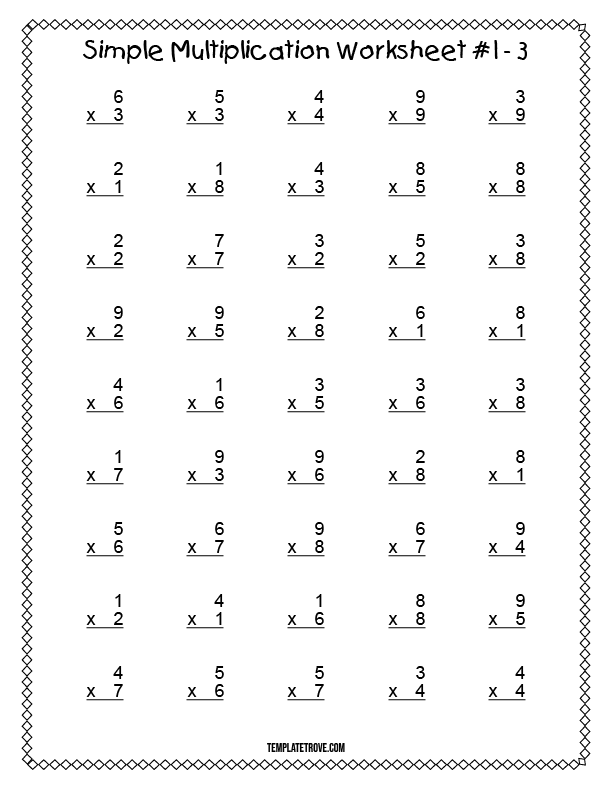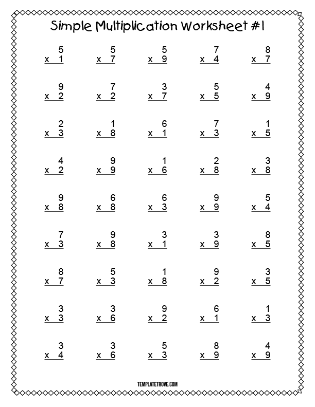 At Template Trove, we provide simple multiplication worksheets for 2nd and 3rd grade students. Our math worksheets are printable and include answer sheets for you or your student to check the correct answers.
