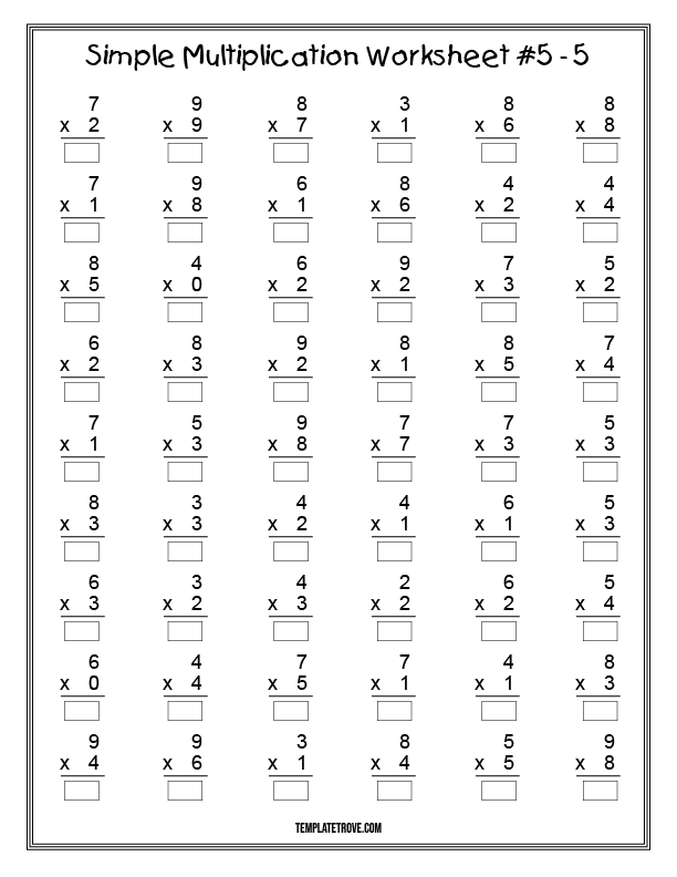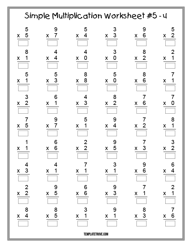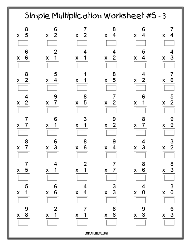 At Template Trove, we provide simple multiplication worksheets for 2nd and 3rd grade students. Our math worksheets are printable and include answer sheets for you or your student to check the correct answers.