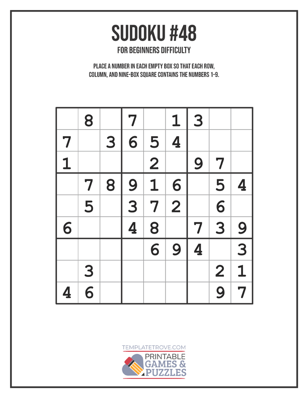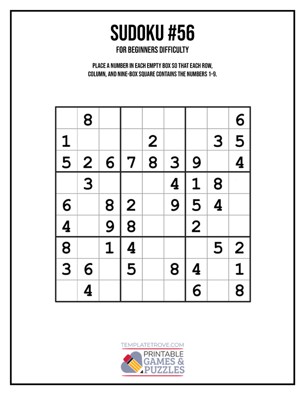 The Sudoku printable puzzles can be printed on any inkjet or laser printer, so they're perfect for on-the-go puzzling.
