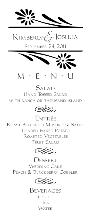 Menu shown before assembly. Front layer card can be attached to base card with a standard glue stick or glue dots.