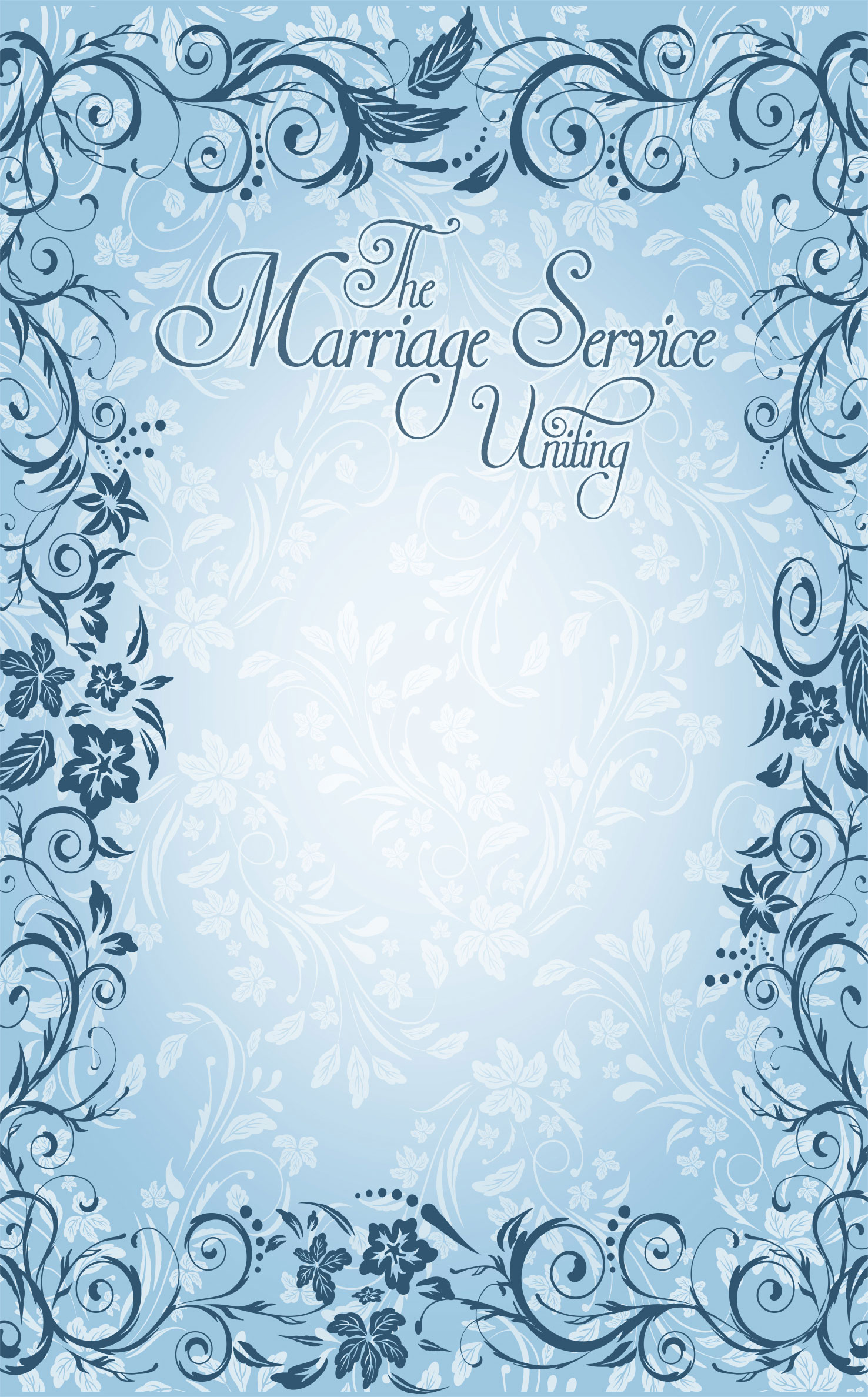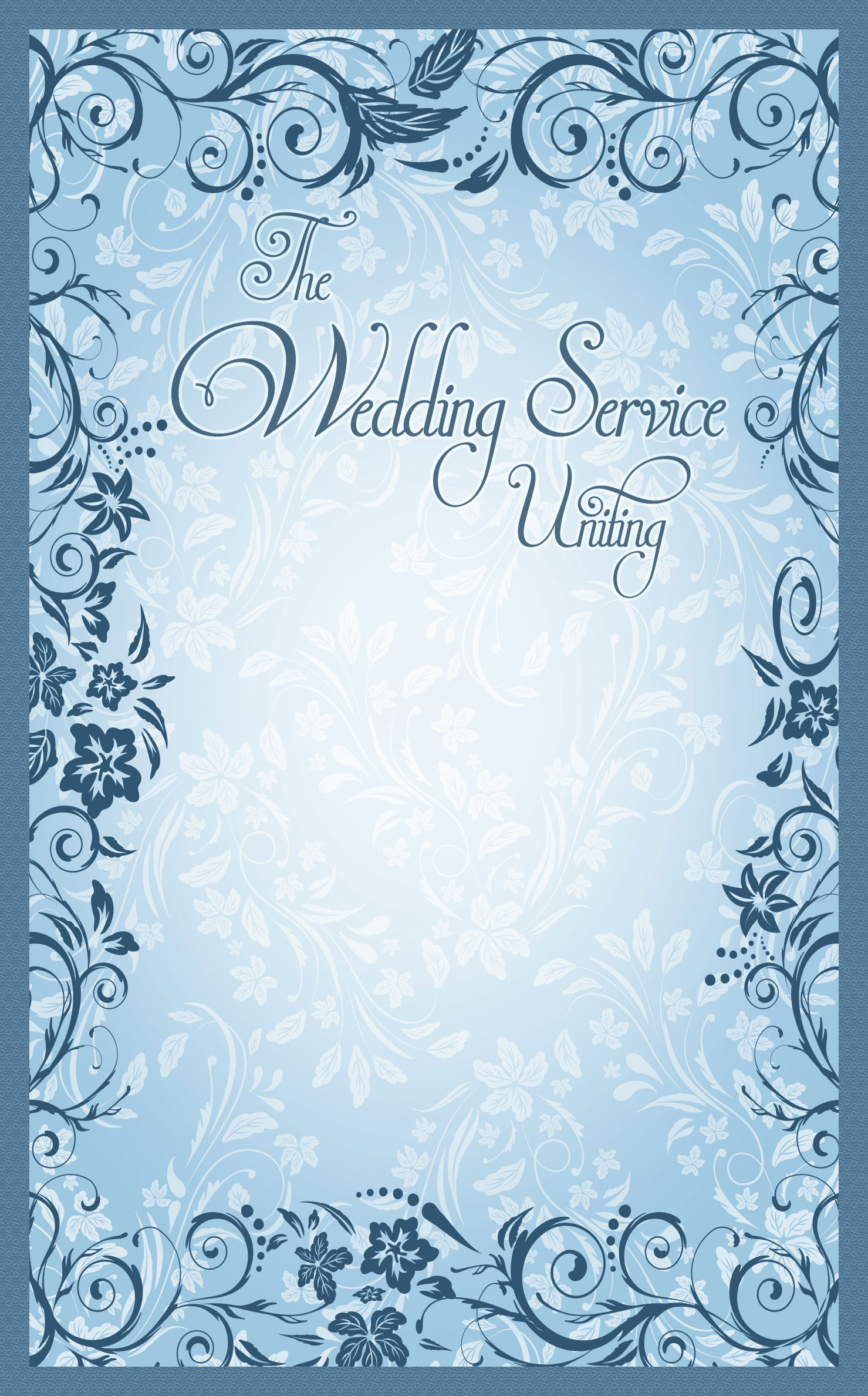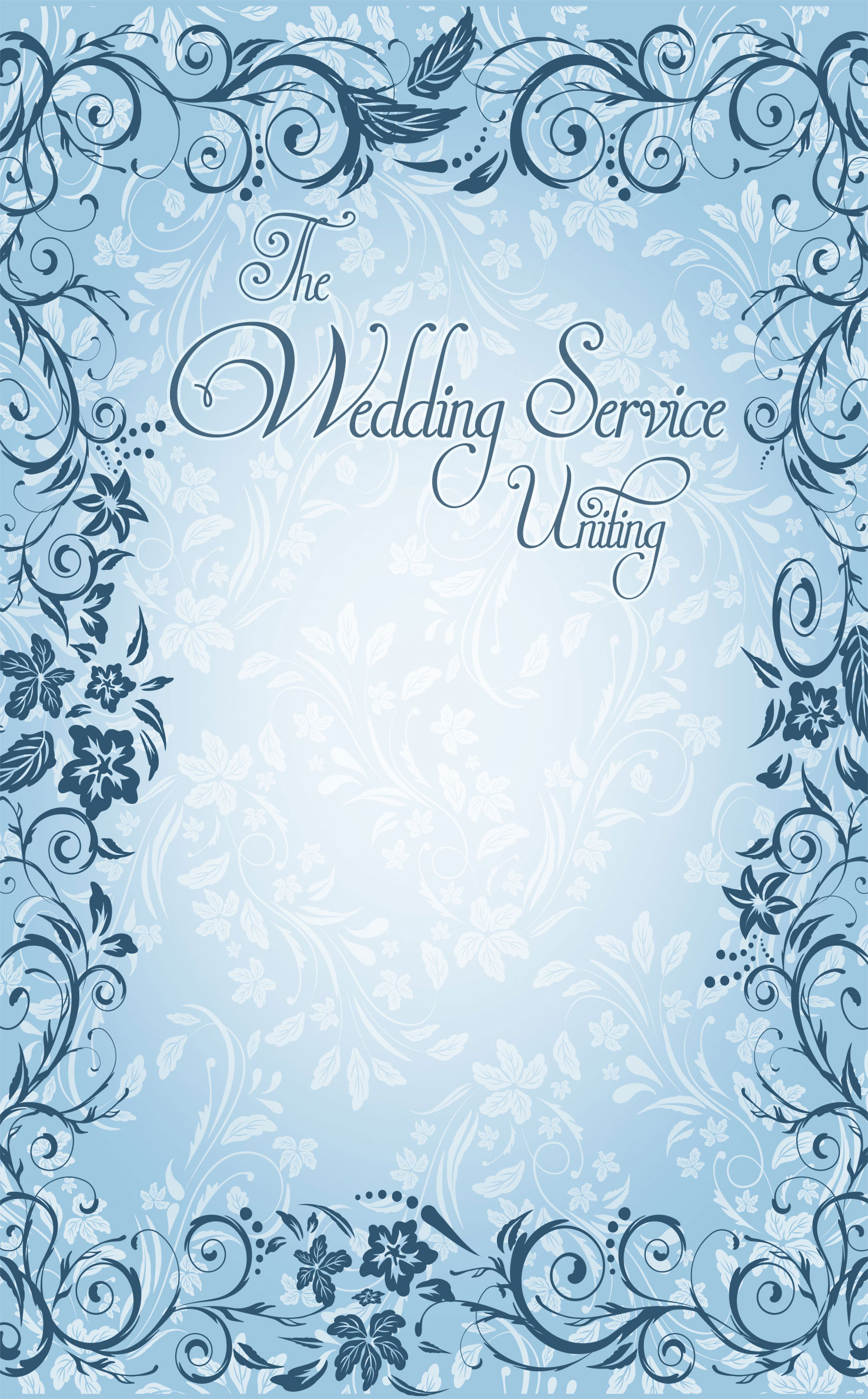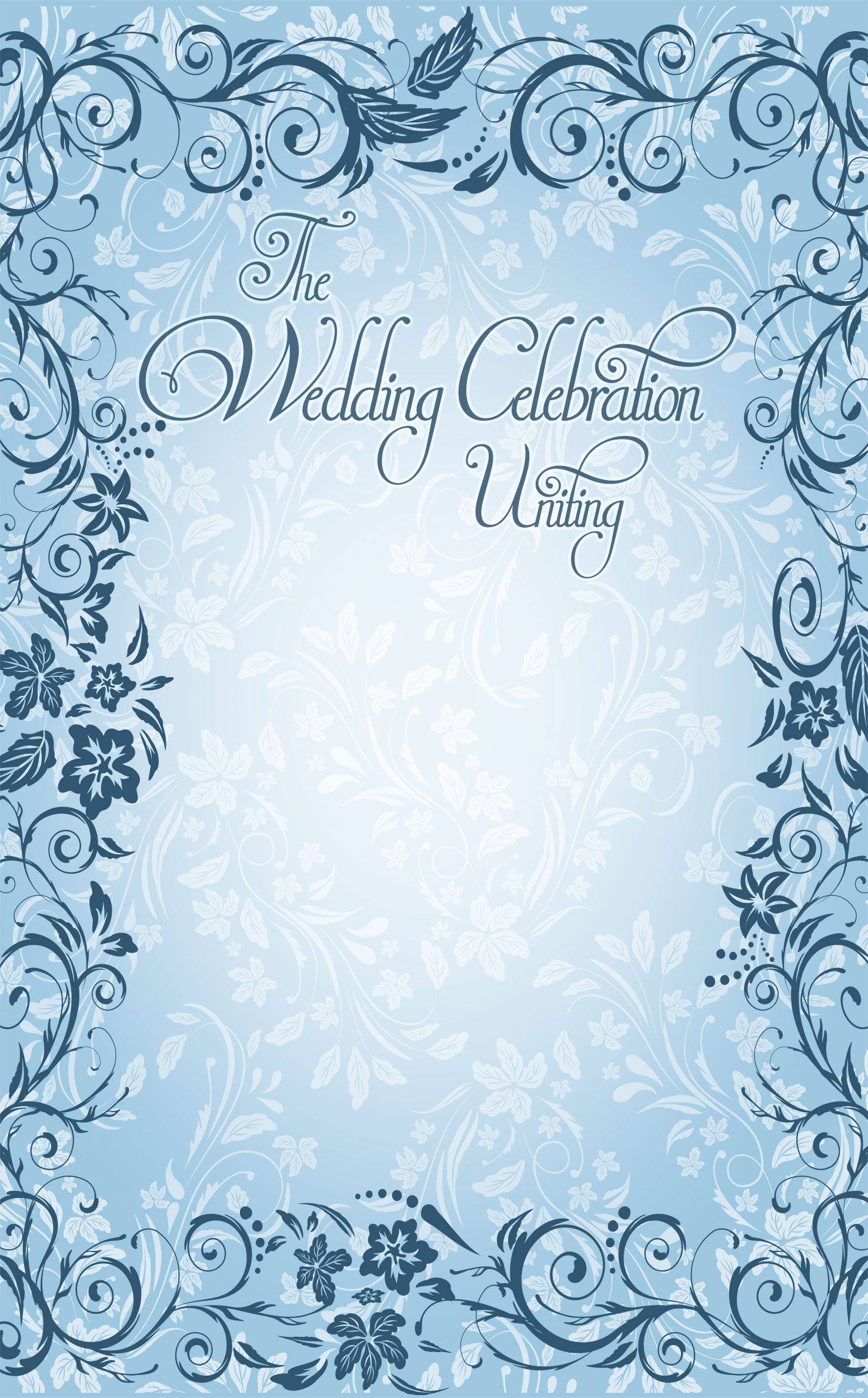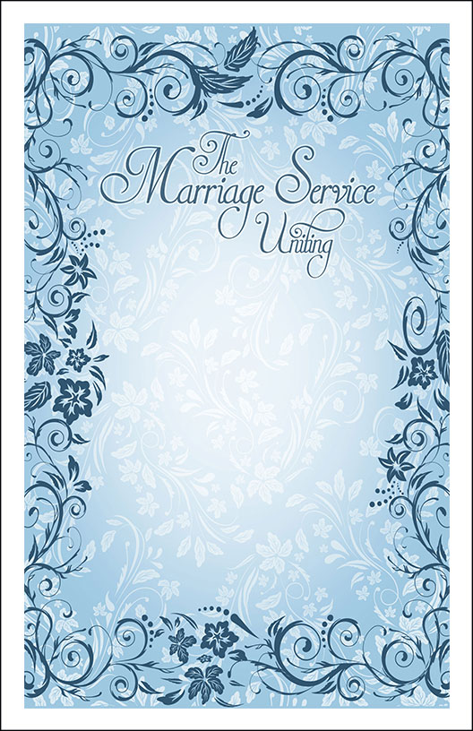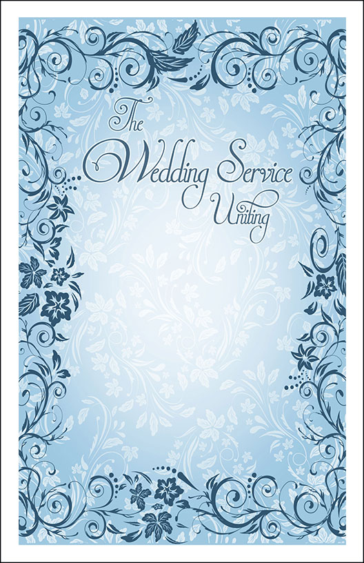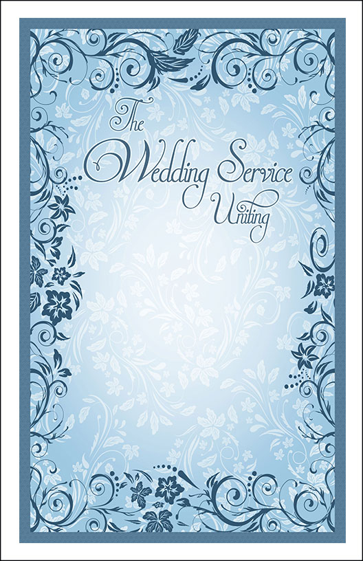 Cover Design 11A includes a dark blue floral border with a lighter blue floral background. Lots of room in the center to add your wedding details.