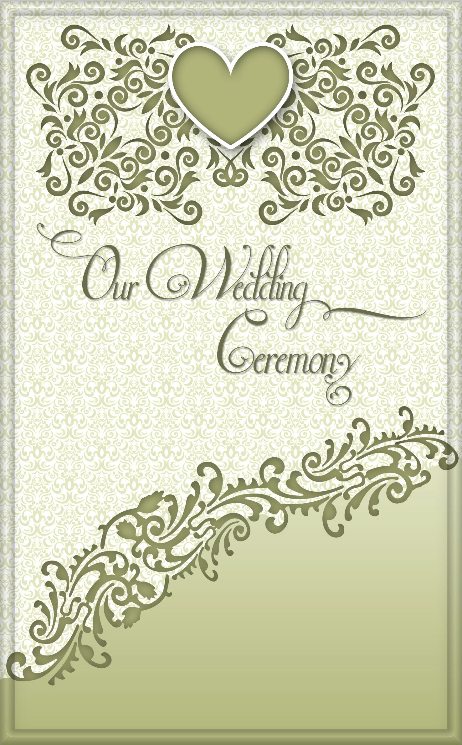 Use wedding program cover template to create your own wedding programs. Template 12A offers 4 different pre-designed layouts with wording or download any of the 11 graphics and customize with your own ceremony wording.
