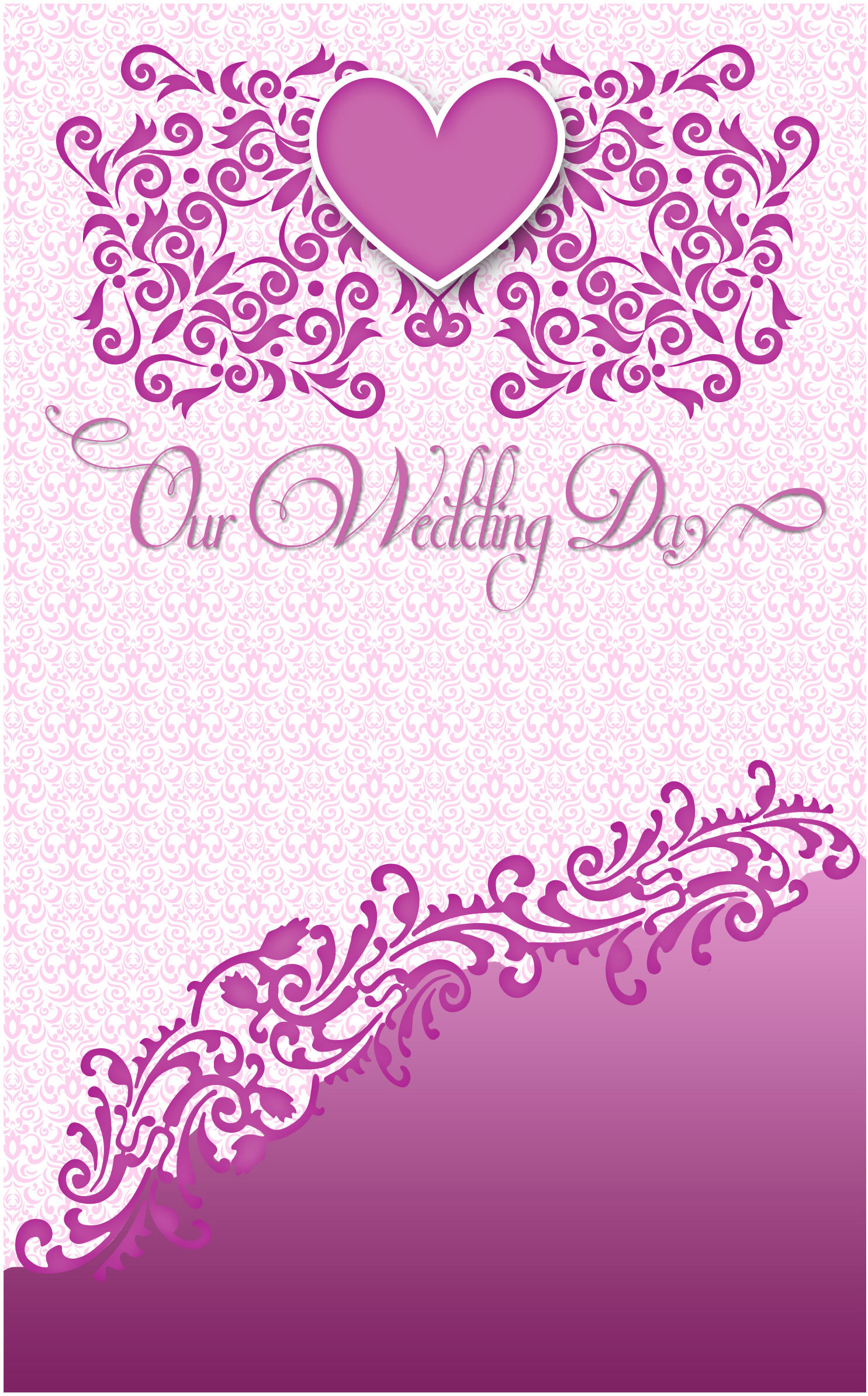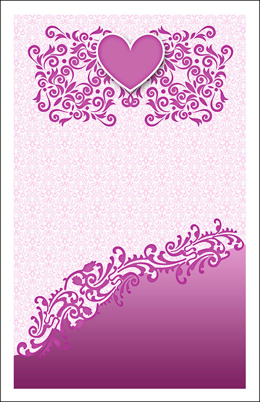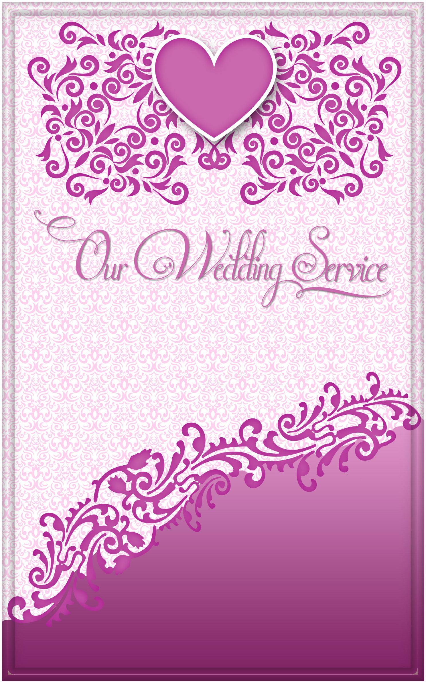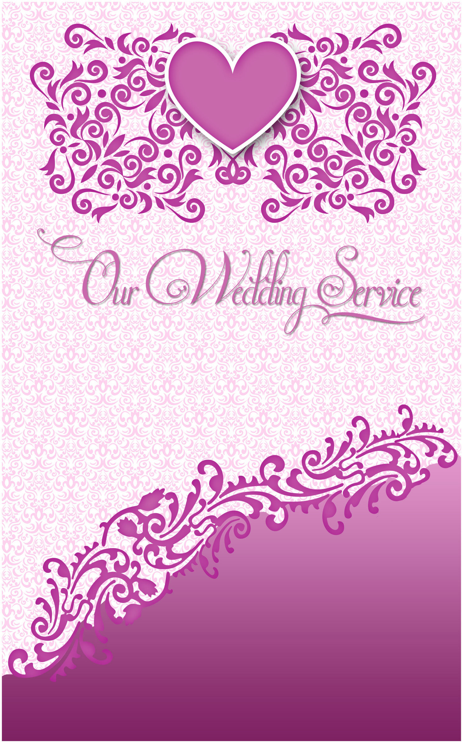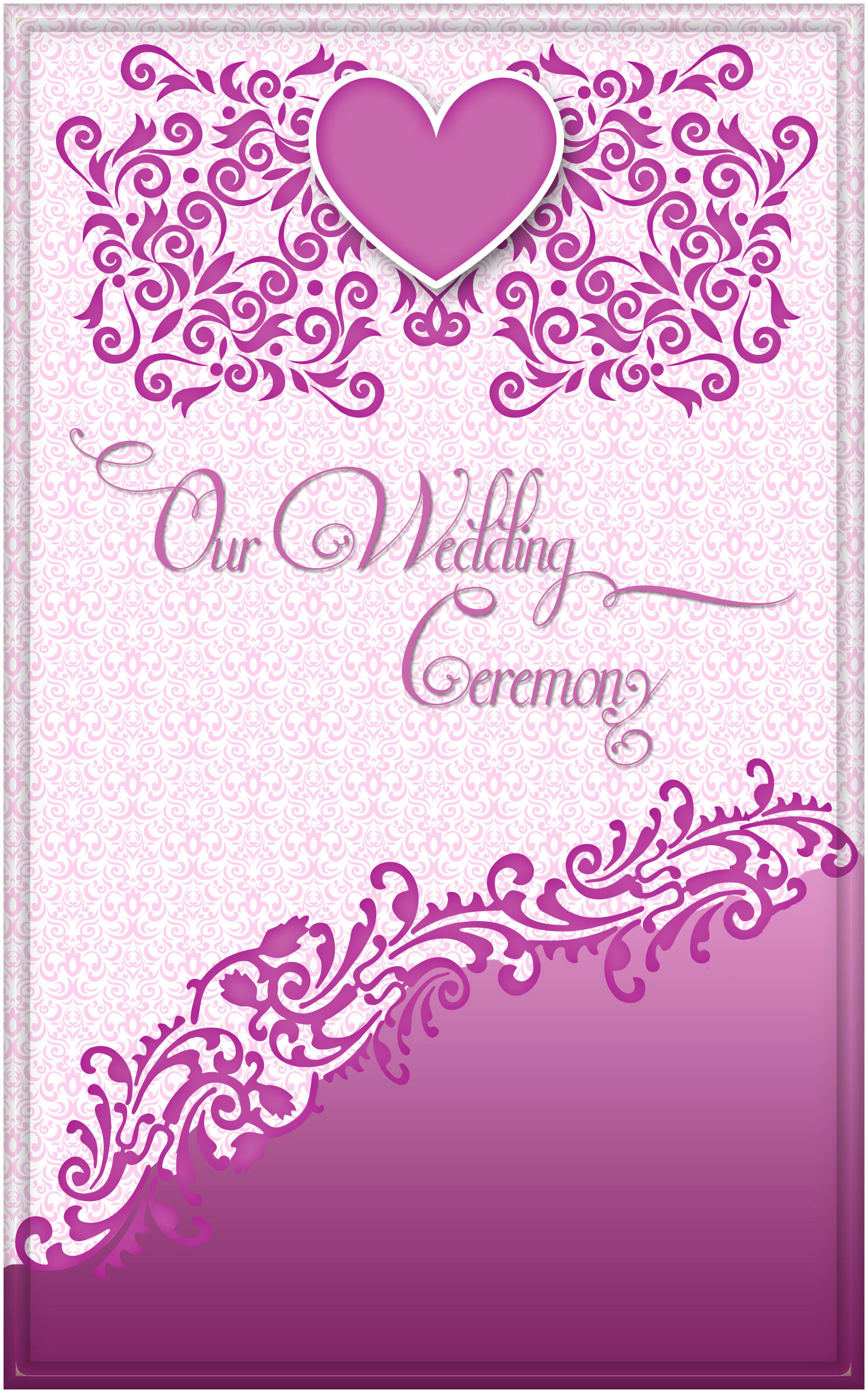 A small gradient magenta heart floating over a magenta floral motif at top center highlights this template. It also has a curved magenta floral design at bottom with plenty of room for your wedding ceremony details.