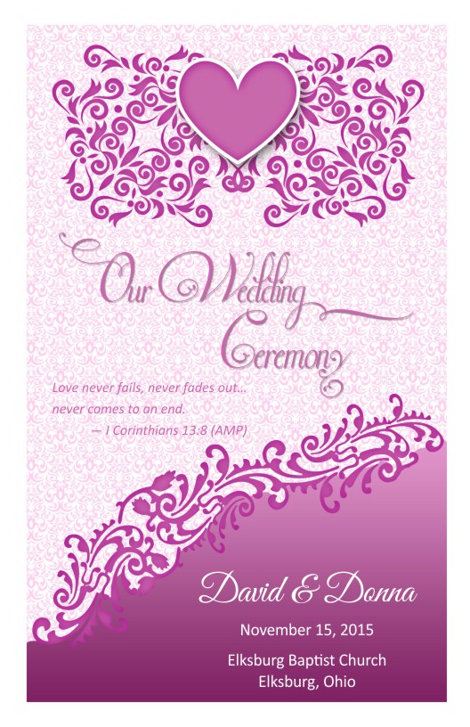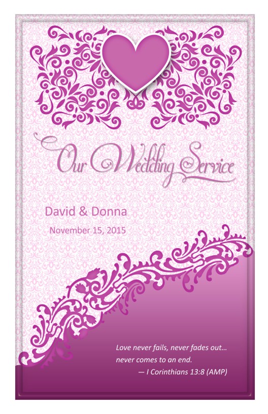 Use wedding program cover template to create your own wedding programs. Template 12B offers 4 different pre-designed layouts with wording or download any of the 11 graphics and customize with your own ceremony wording.