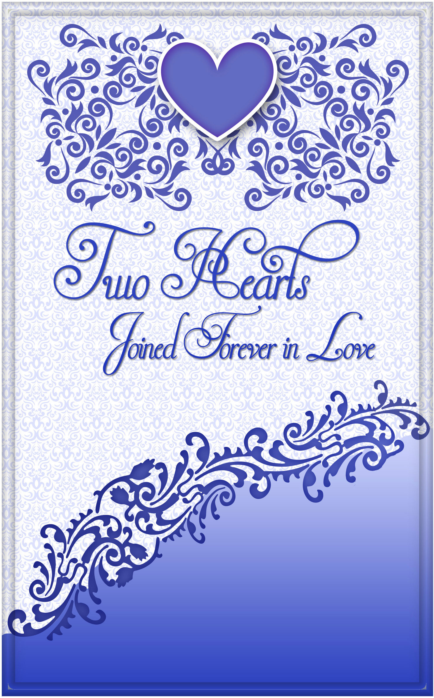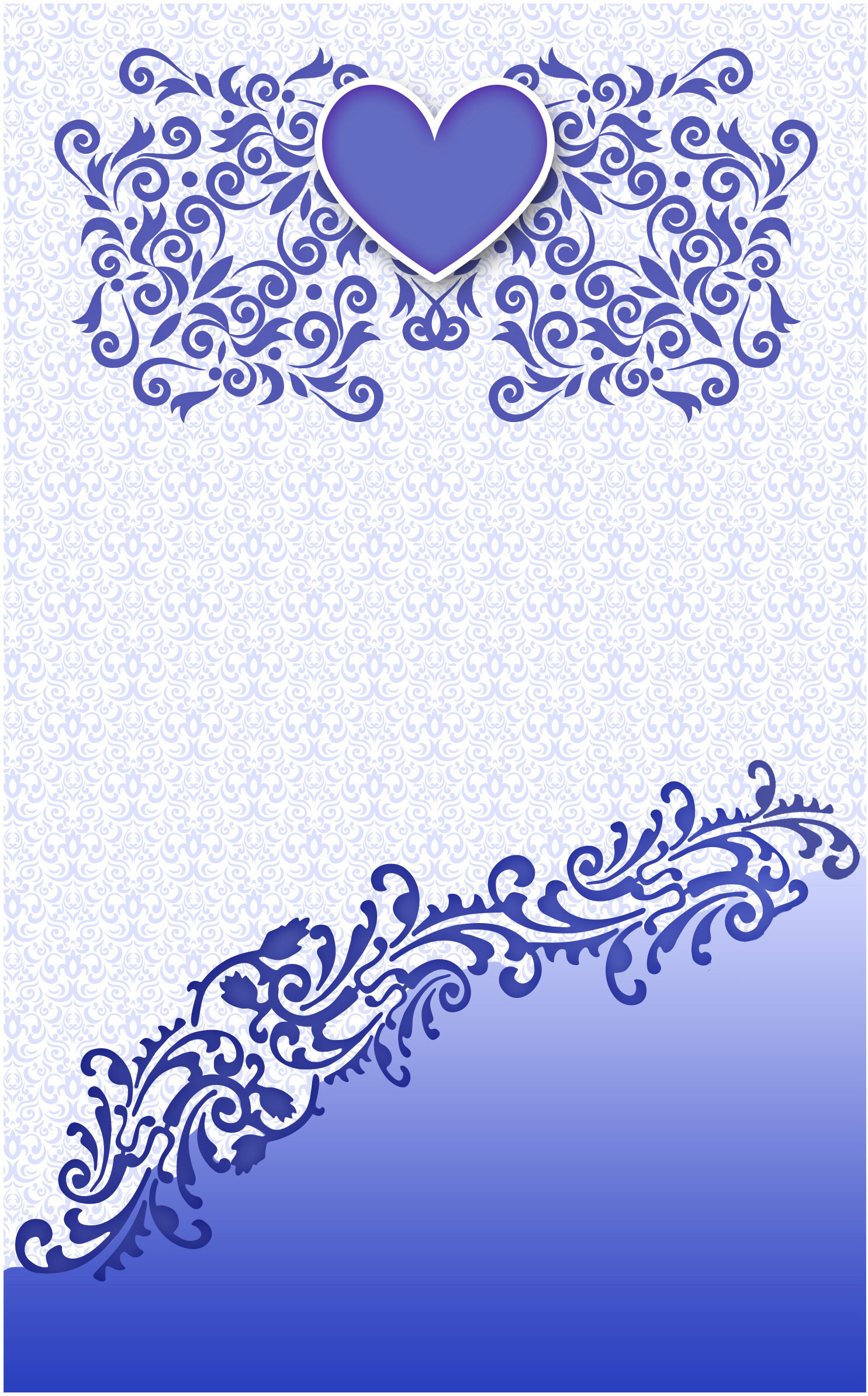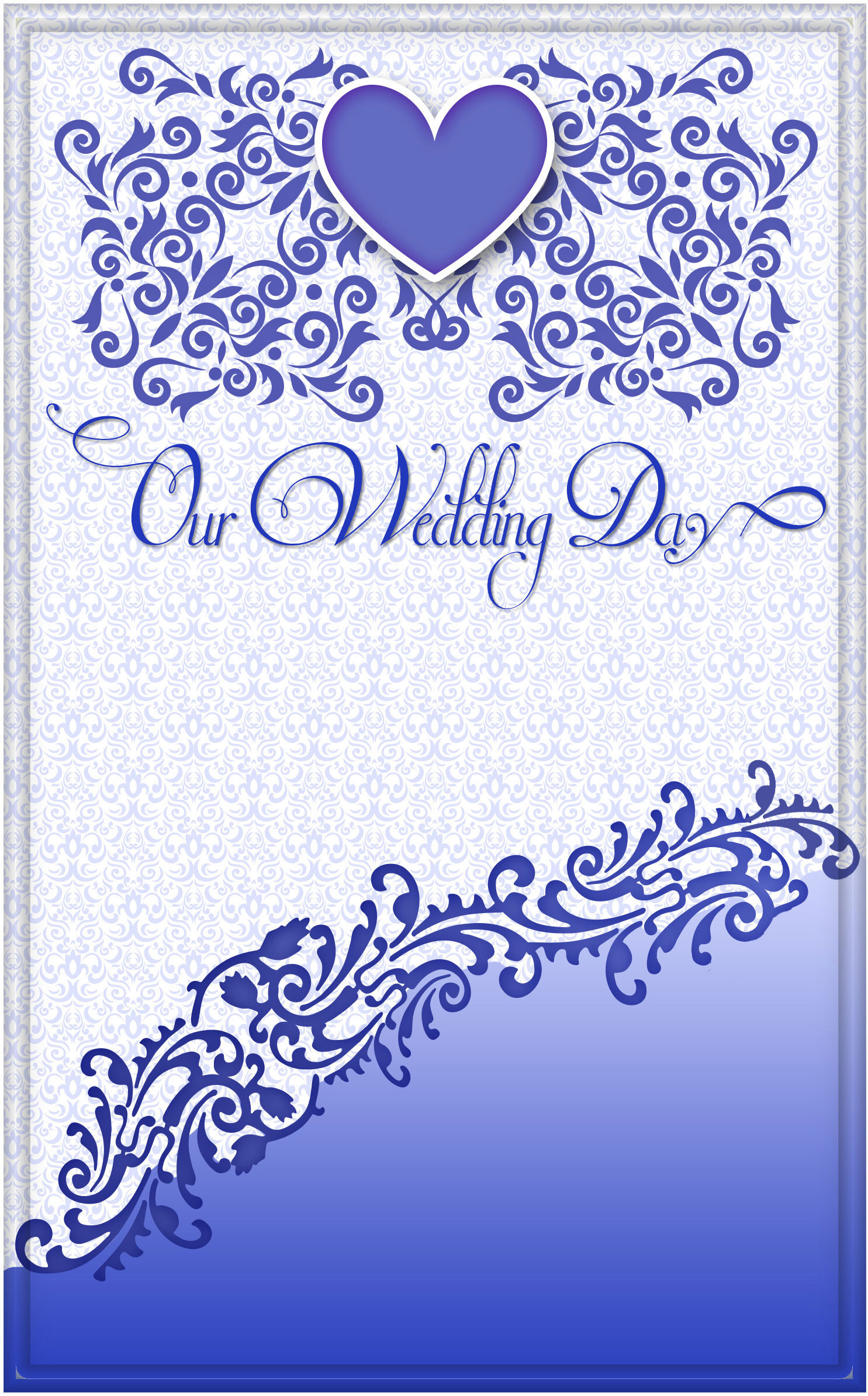 A small gradient blue heart floating over a blue floral motif at top center highlights this template. It also has a curved blue floral design at bottom with plenty of room for your wedding ceremony details.