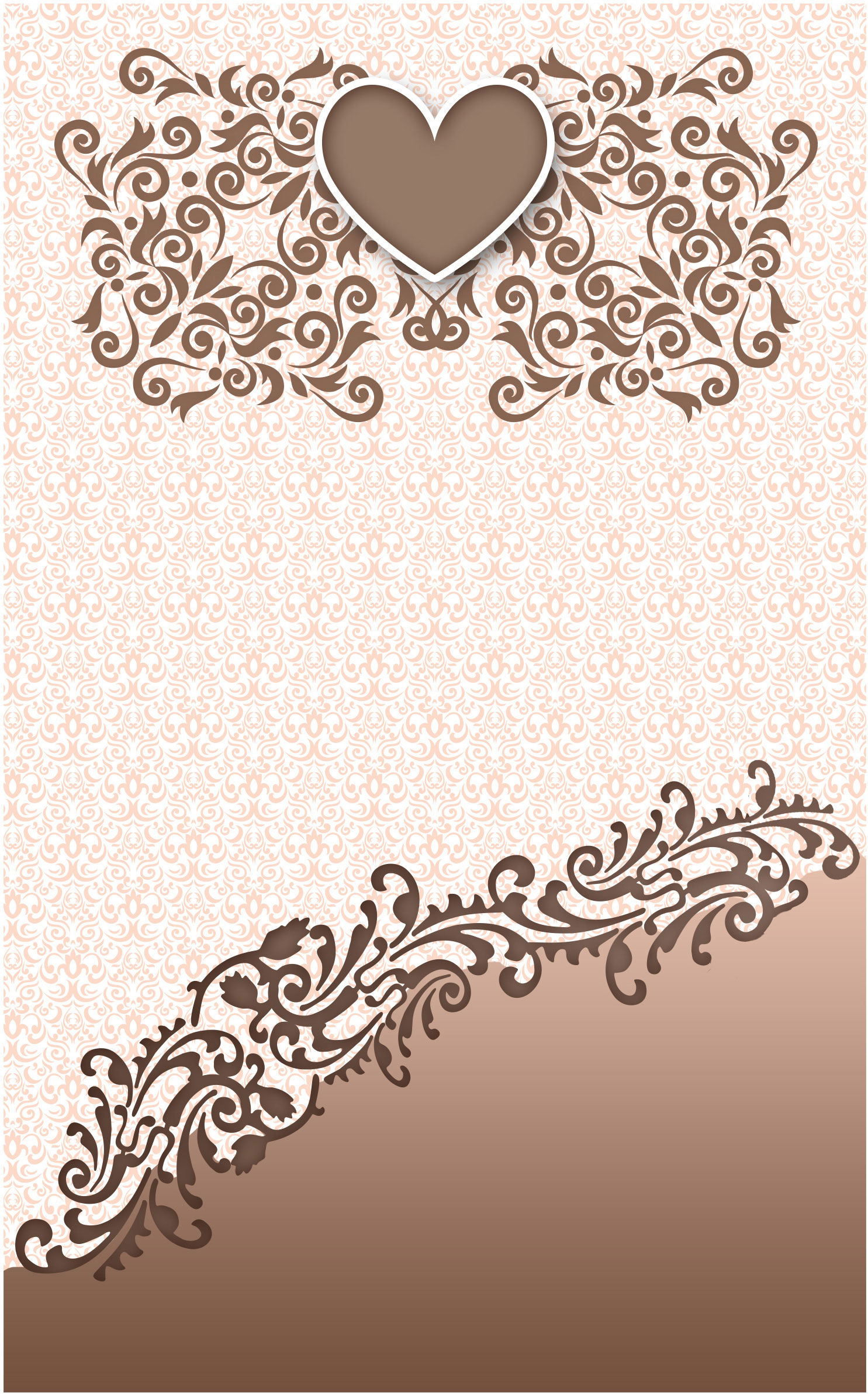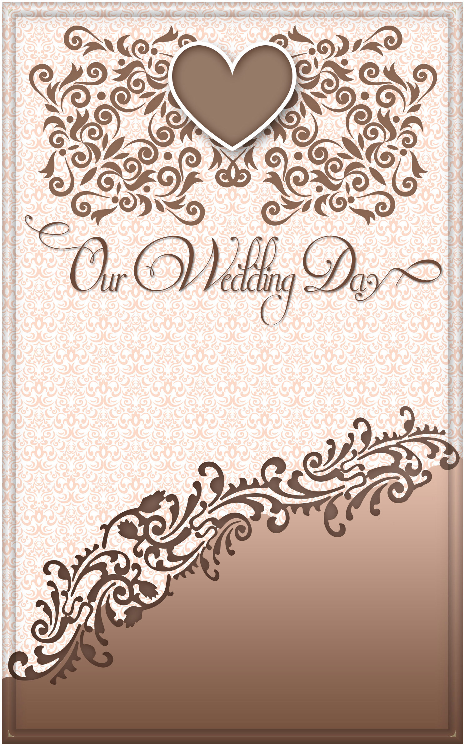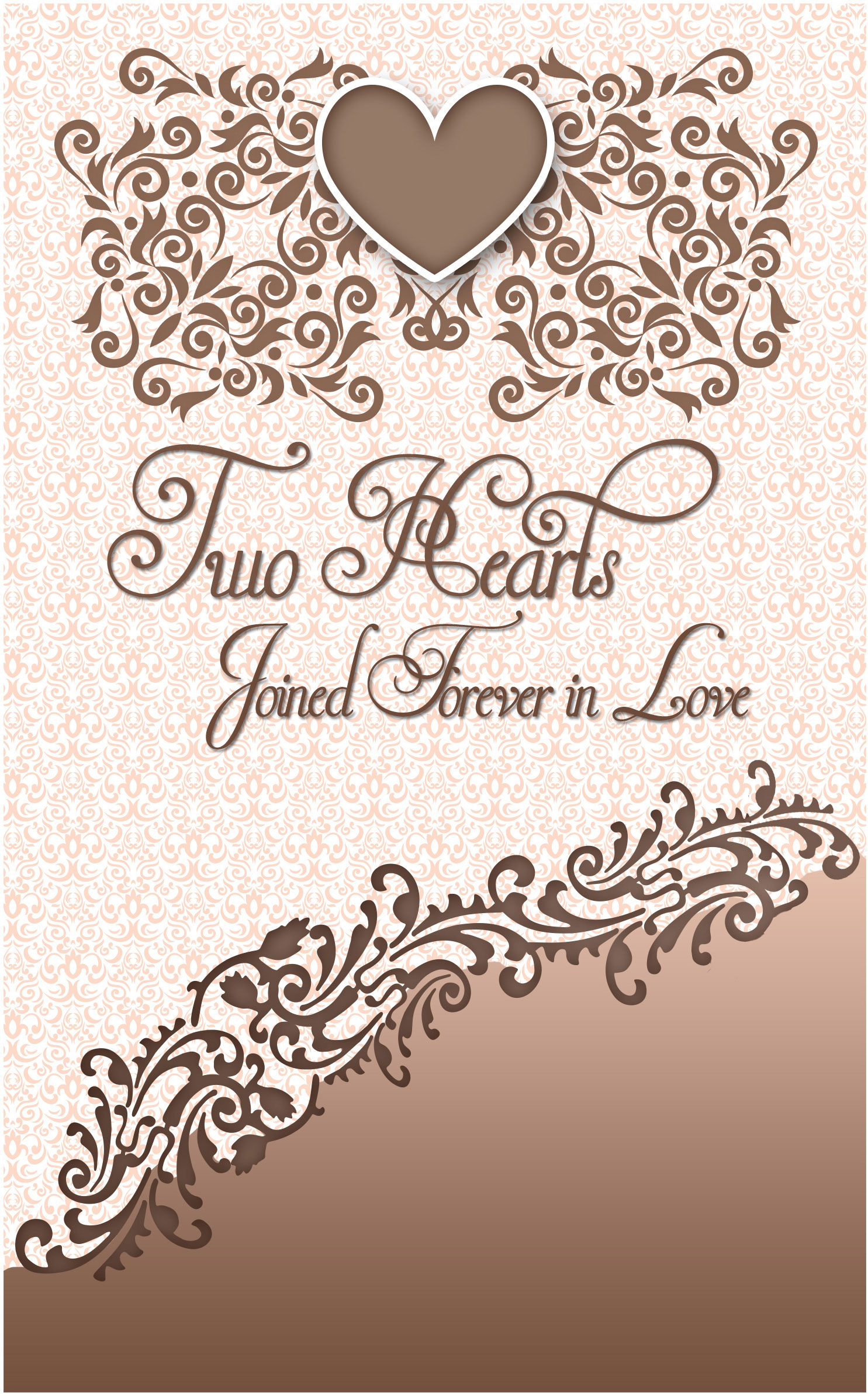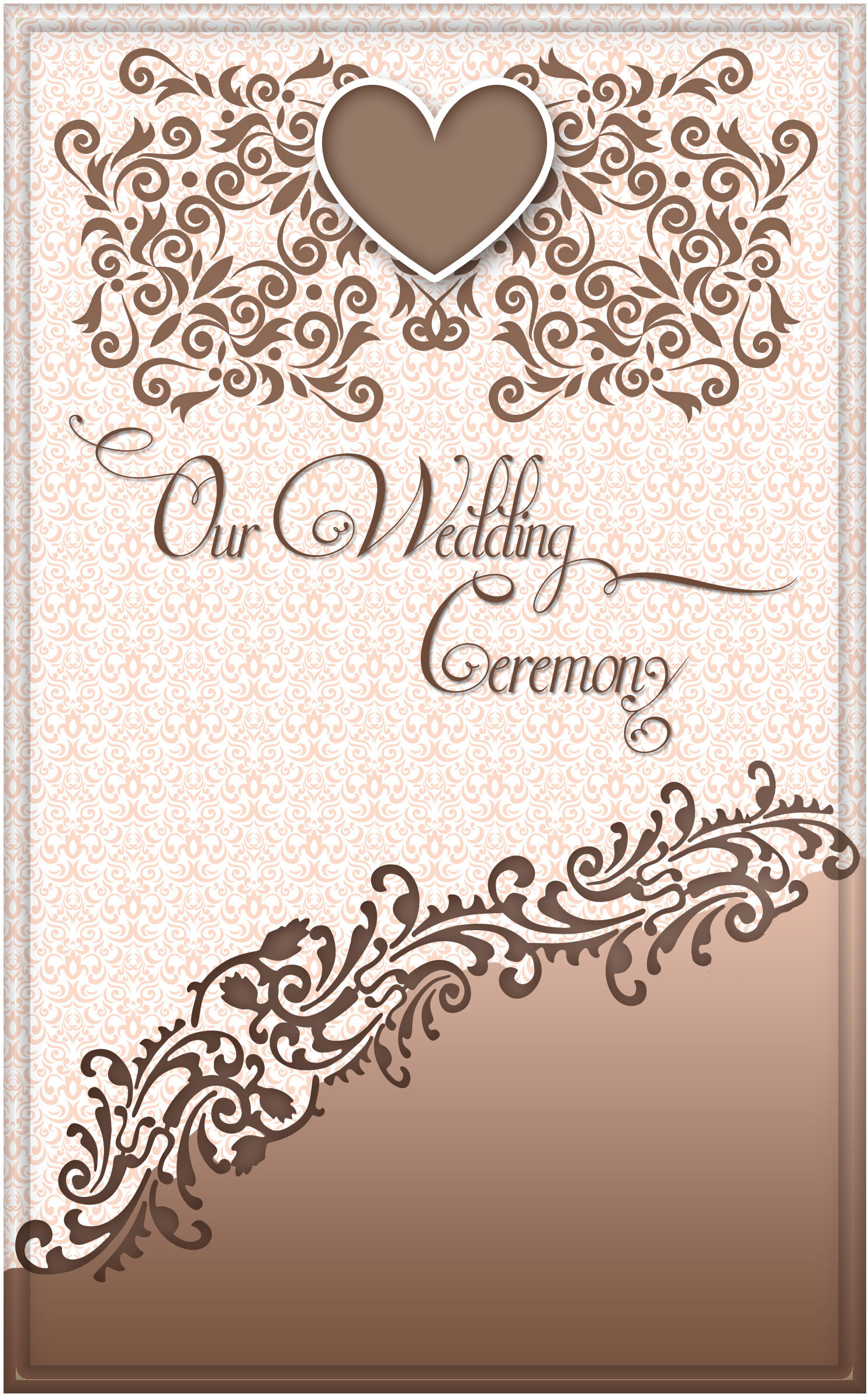 A small gradient brown heart floating over a brown floral motif at top center highlights this template. It also has a curved brown floral design at bottom with plenty of room for your wedding ceremony details.