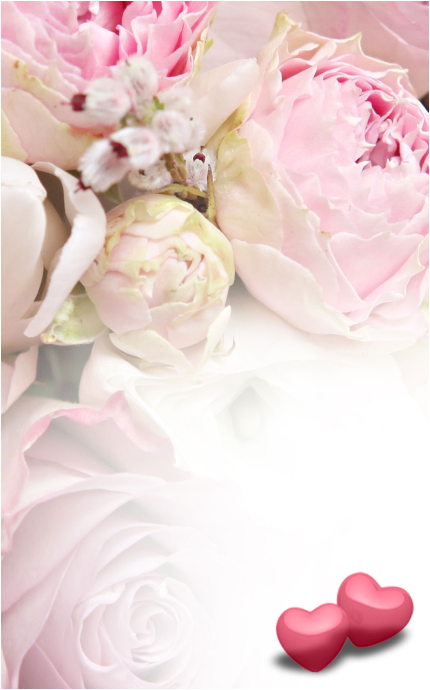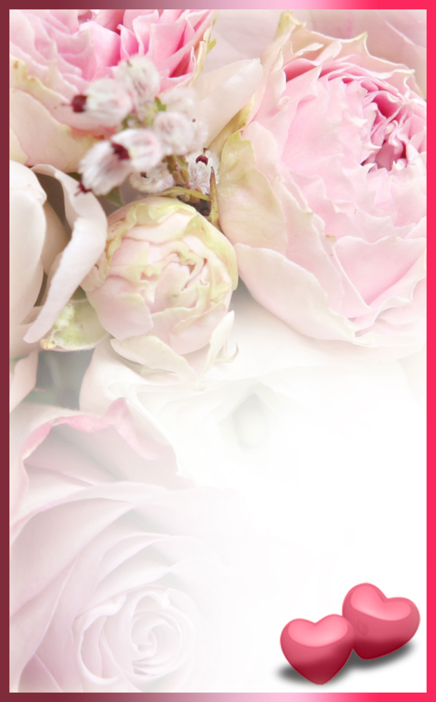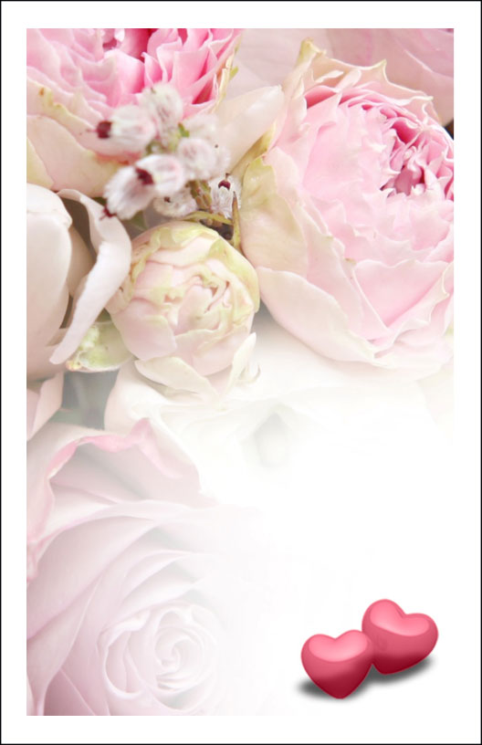 This template design has light pink flowers that fade toward bottom of page. Some graphics have candy hearts at bottom right and a pre-designed matching border.