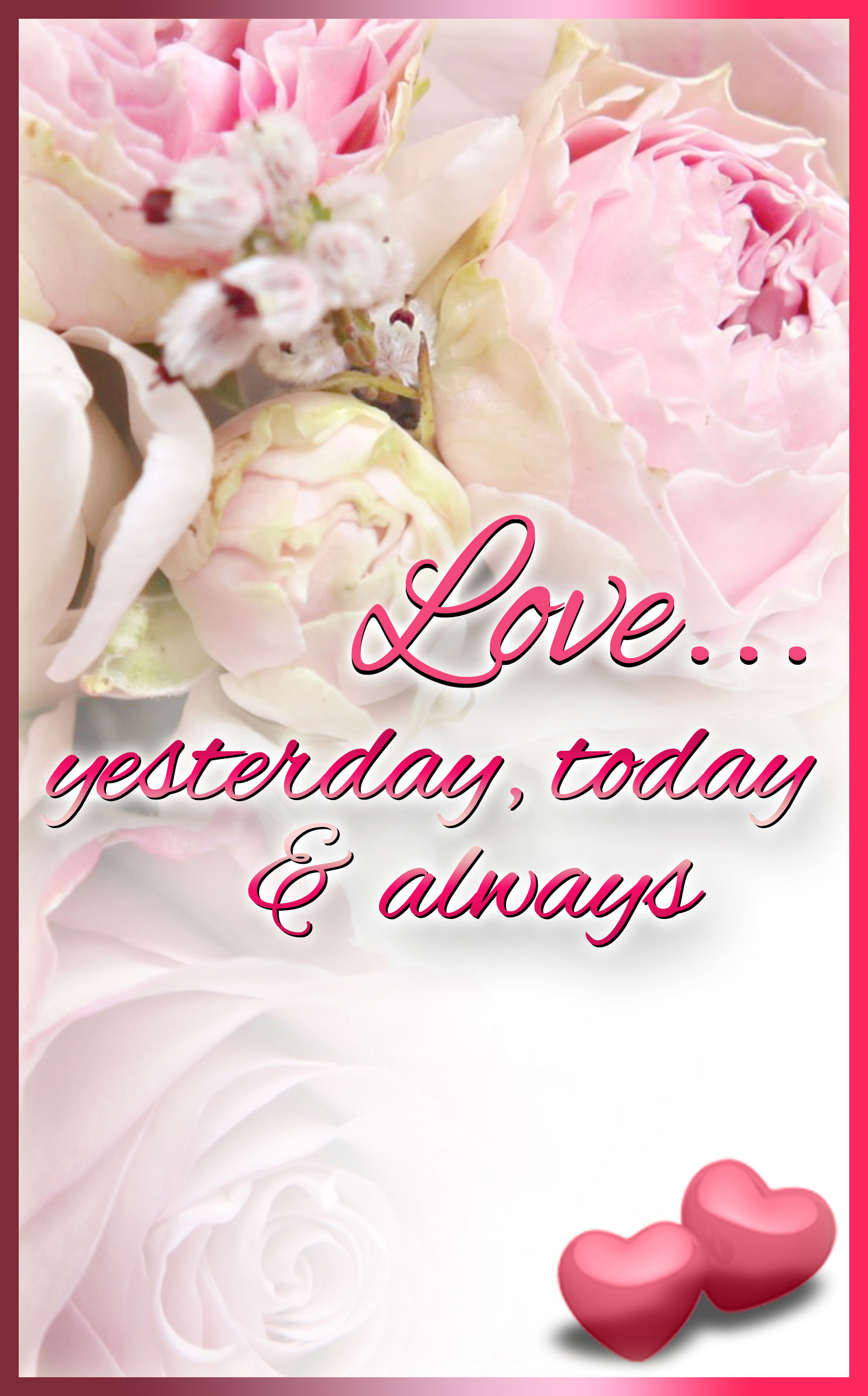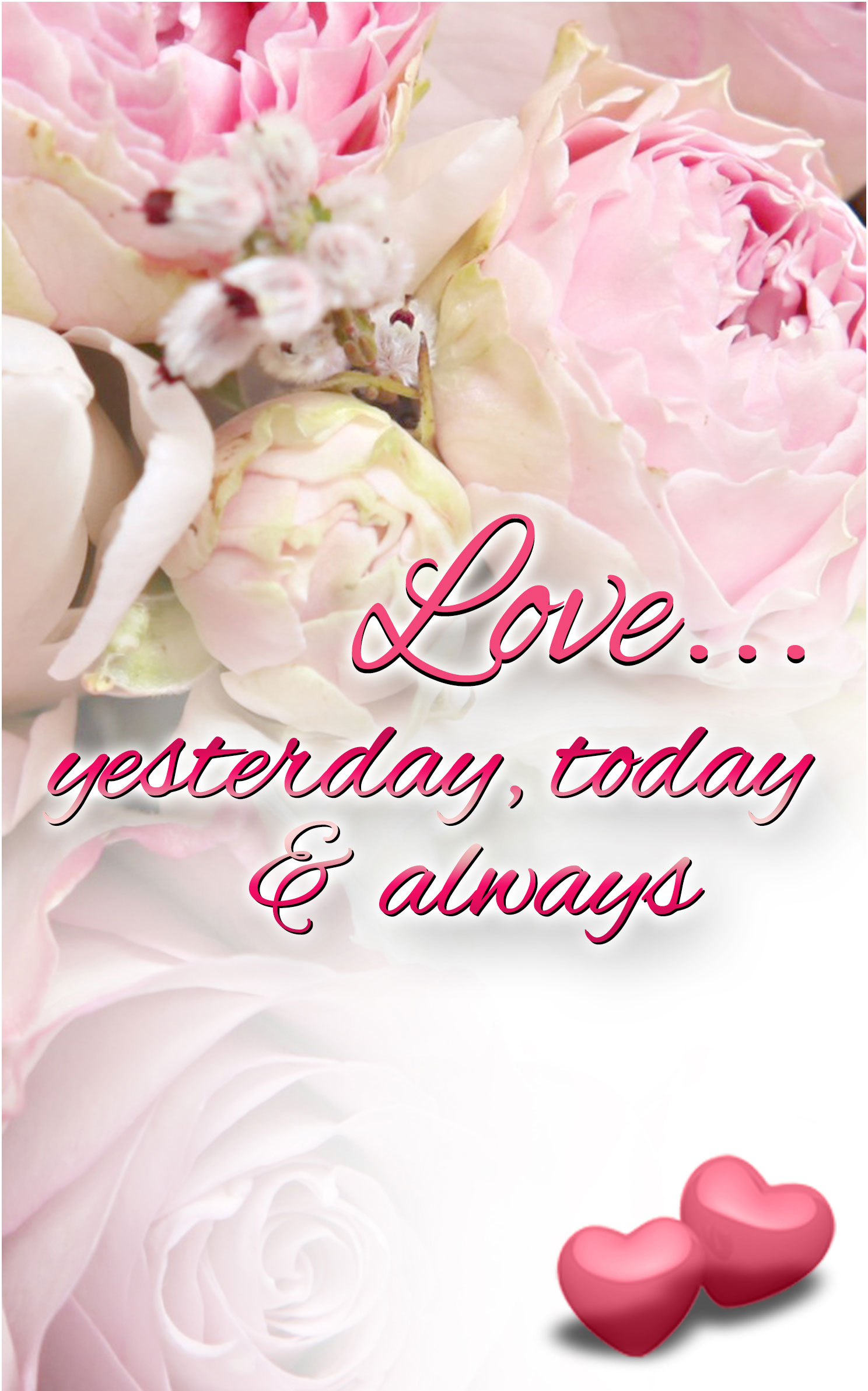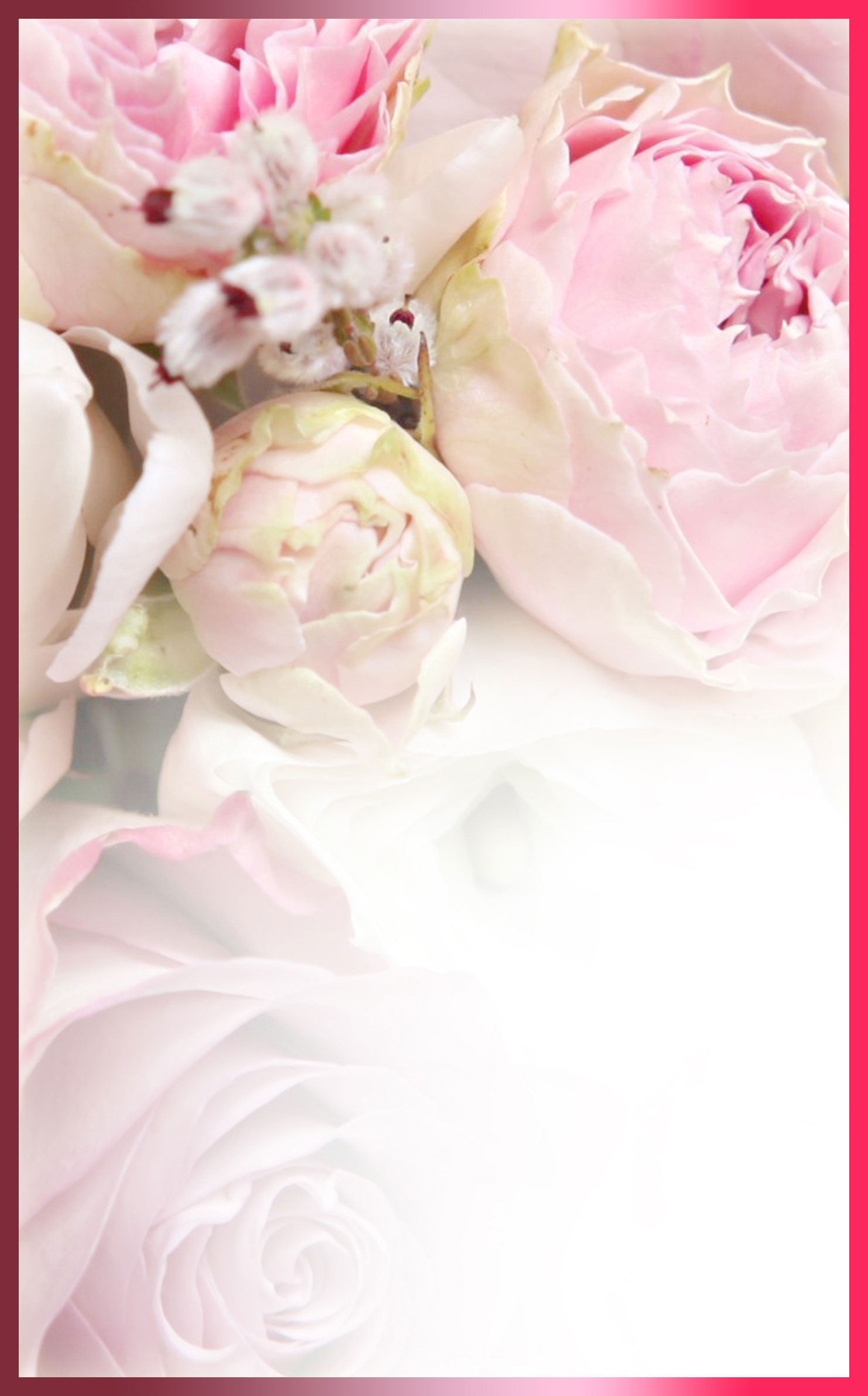 This template design has light pink flowers that fade toward bottom of page. Some graphics have candy hearts at bottom right and a pre-designed matching border.