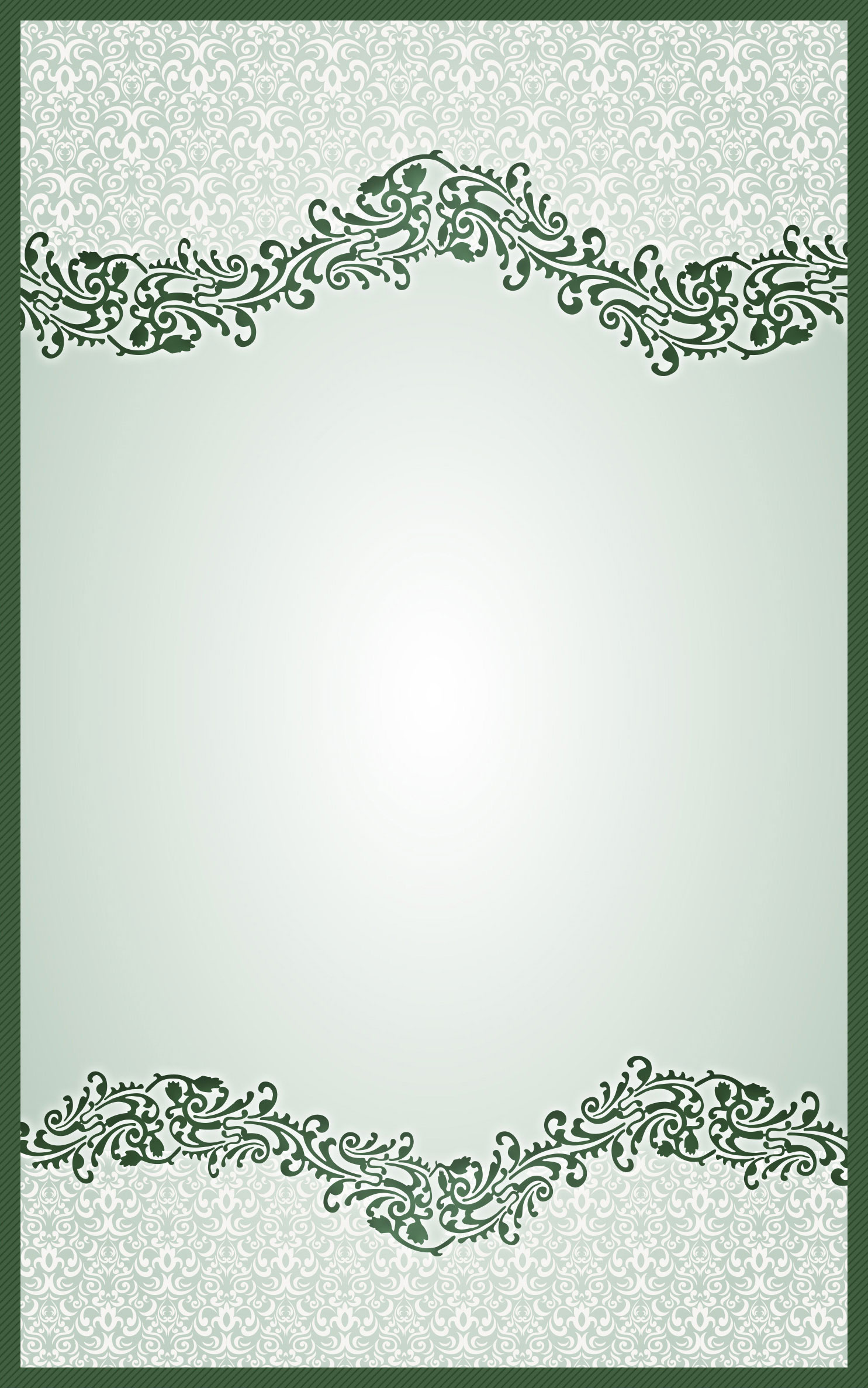 This design includes shades of green floral background with green wording. Offers lots of space for wording as the majority of design is light enough to easily read the words that overprint the background graphic.